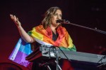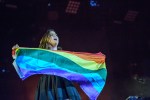 Les épaules recouvertes d’un drapeau arc-en-ciel, la musicienne, émue et émouvante, a interprété la tristement de circonstance composition Les tireurs fous, rendant compte de sa «douleur, celle que vous partagez tous». «C’est mon humanité qui est atteinte, mon intimité qui est atteinte aussi», a-t-elle déclaré, lançant un message d’espoir, de possibilité de changer les choses et de vaincre l’homophobie.
