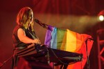 Les épaules recouvertes d’un drapeau arc-en-ciel, la musicienne, émue et émouvante, a interprété la tristement de circonstance composition Les tireurs fous, rendant compte de sa «douleur, celle que vous partagez tous». «C’est mon humanité qui est atteinte, mon intimité qui est atteinte aussi», a-t-elle déclaré, lançant un message d’espoir, de possibilité de changer les choses et de vaincre l’homophobie.