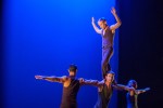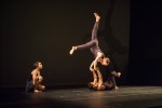 Dès l’entrée des artistes, on sait qu’on retiendra notre souffle tout le long de la soirée, alors que la fille du groupe, filmée par une caméra projetant son image sur grand écran, marche sur des œufs (littéralement) sans en casser un. S’ensuit un numéro d’acrobaties de groupe, fluide et éblouissant, où les corps se superposent, s’emboîtent, montent l’un sur l’autre, forment des géométries improbables; en fin de spectacle, le groupe y va cette fois d’un numéro de trapèze tout aussi épatant. Là encore, les artistes défient les lois de la gravité en se suspendant les uns aux autres – autant la fille aux garçons que ces derniers à elle – dans des mouvements gracieux qui semblent si faciles.