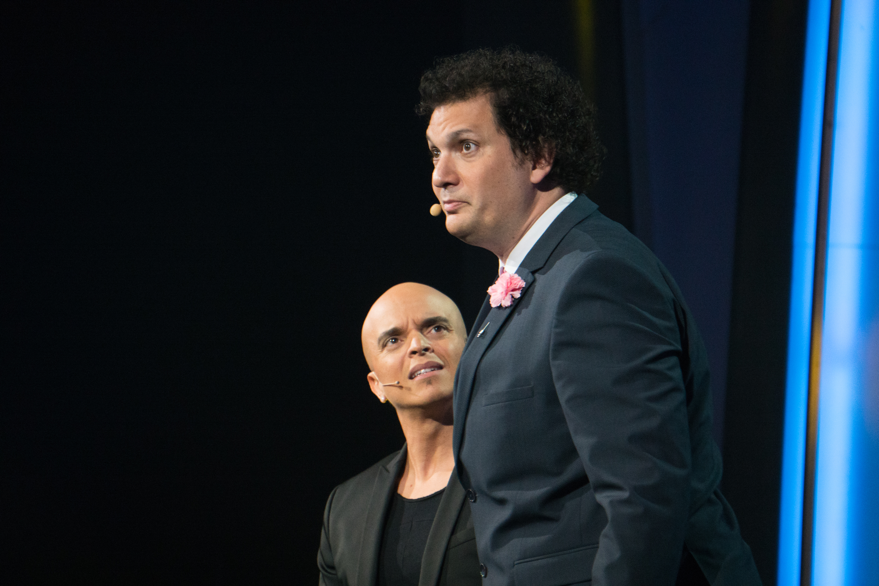 Aux commandes – avec Rachid Badouri – du gala qui réunissait des humoristes des deux côtés de l’Atlantique, le sympathique magicien Éric Antoine (appuyé sur une béquille après s’être fracturé le pied au gala de Gilbert Rozon la veille) a été une belle découverte pour le public montréalais : «Parce qu’ici, je suis pas du tout connu, mais en France, oh la la… Encore moins», s’est présenté le gaillard avant de «faire apparaître son ami Rachid». Le duo y est ensuite allé de vannes sur leur pays respectif (pas toutes convaincantes : on pense à une blague de «tim-bites» plutôt usée) avant de laisser la place aux invités.