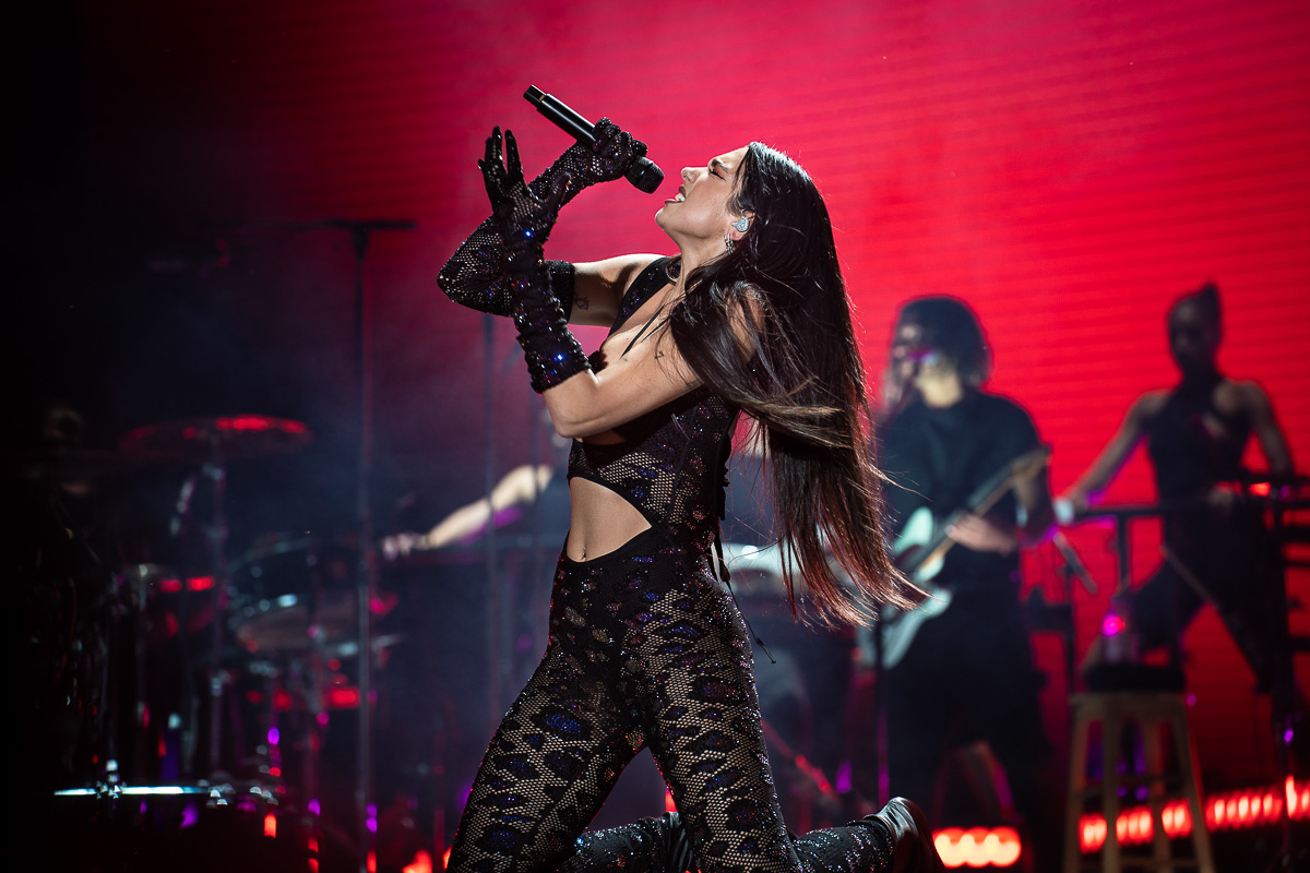 Se sont ensuite succédé à un rythme effréné New Rules, tirée de son premier album homonyme, ainsi que Love Again, Cool, Pretty Please et Break My Heart, de Future Nostalgia. Déjà, les spectateur.trice.s, en sautant, faisaient trembler l’installation en hauteur sur laquelle nous nous trouvions.