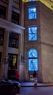 L’édifice du Centre PHI prend vie grâce à cette installation multimédia interactive conçue par Sylvain Dumais et Phoebe Greenberg. La façade du bâtiment se transforme en une rivière grâce aux mouvements de vagues projetés sur les fenêtres de ses quatre étages de la rue Saint-Pierre. L’installation est accompagnée d’un poème original de Joséphine Bacon et d’une trame sonore de Kelly Nunes.