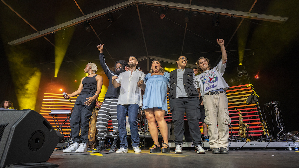 Joseph Sarenhes s’est finalement joint au membre du collectif hip-hop Nomadic Massive le temps de l’ensoleillée dernière chanson, les artistes chantant et dansant au diapason.