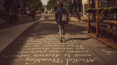 Les passant.e.s de l’avenue du Mont-Royal peuvent découvrir sous leurs pieds 150 courts textes et poèmes relatant le passé du Plateau-Mont-Royal, qui défilent sur un parchemin de 2,5 kilomètres peint au sol.