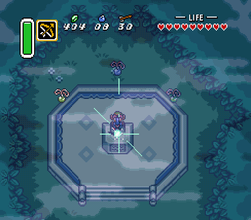 Voilà donc le titre qui, à mes yeux, est le meilleur de la franchise. Sorti en avril 1992 en Amérique du Nord, le jeu The Legend of Zelda: A Link to the Past a marqué énormément ma jeunesse et j’ai perdu le compte du nombre de fois que je l’ai terminé. Ce jeu, sorti sur la Super Nintendo, était le premier de la série à offrir un très grand monde complexe, complet, aux graphismes fantastiques à l’époque (un peu simplistes à mon avis) et avec une histoire bien ficelée. Le but initial est d’acquérir trois pendentifs pour mettre la main sur la Master Sword avant d’être propulsé dans le Dark World, ce monde de la noirceur dans lequel le sorcier Agahnim sévit. Vous devrez donc vaincre les créatures de différents donjons pour sauver les sept sages afin de briser le saut protégeant la tour de Ganon.