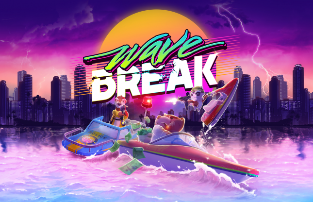 Plongé dans un univers pastel très 80’s et appuyé par une trame sonore synthwave étonnamment bonne (extrait à la fin de l’article), Wave Break a du style, mais pas autant que Big Pin, l’ours tout mignon que vous contrôlez. Ne vous fiez pas aux apparences : c’est un patron de la mafia, d’où le veston blanc à la Miami Vice!
