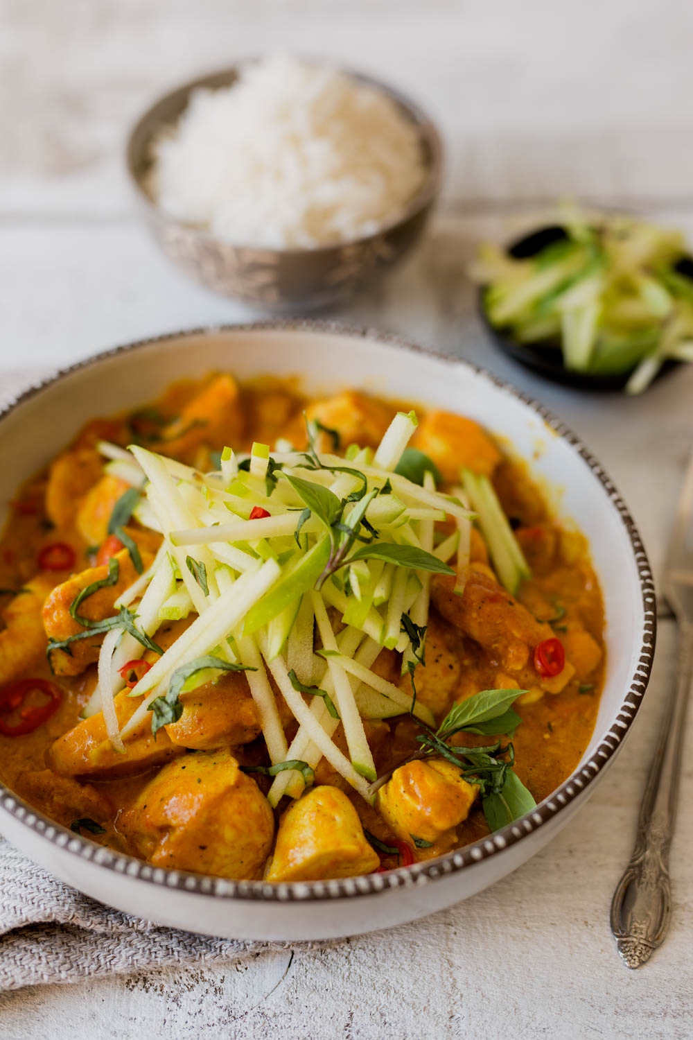 J’adore le cari. J’en mettrais partout! Pour cette recette, j’ai décidé de faire mon propre mélange. Ce n’est vraiment pas compliqué et on peut y aller un peu plus fort sur nos ingrédients préférés! Si vous préférez utiliser une pâte de cari du commerce, je vous recommande la marque Patak’s. Une seule chose à ne pas changer dans cette recette, les pommes vertes! C’est un petit croquant frais qu’on aime tant alors pourquoi s’en priver!