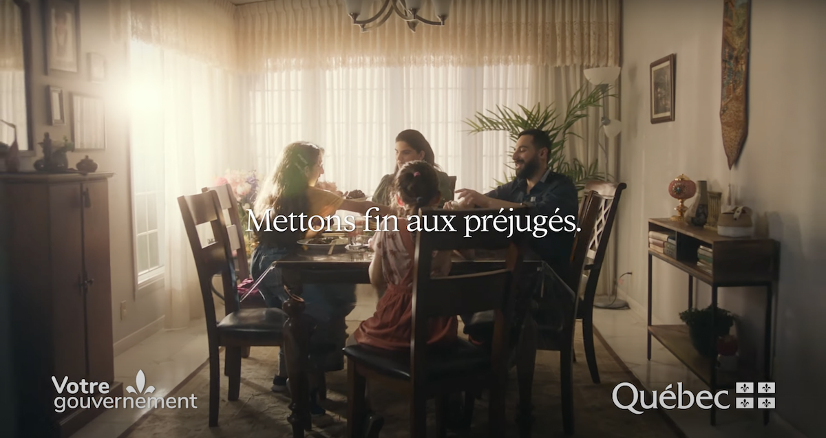 Ainsi, dans une vidéo, nous pouvons voir à titre d’exemple: «Au Québec, un homme originaire d’Amérique du Sud avec des tatouages qui court dans la rue, on appelle ça: un voisin québécois. Mettons fin aux préjugés.» ; ou encore : «Au Québec, cinq personnes d’origine arabe rassemblées dans un appartement, on appelle ça: une famille québécoise. Mettons fin aux préjugés».