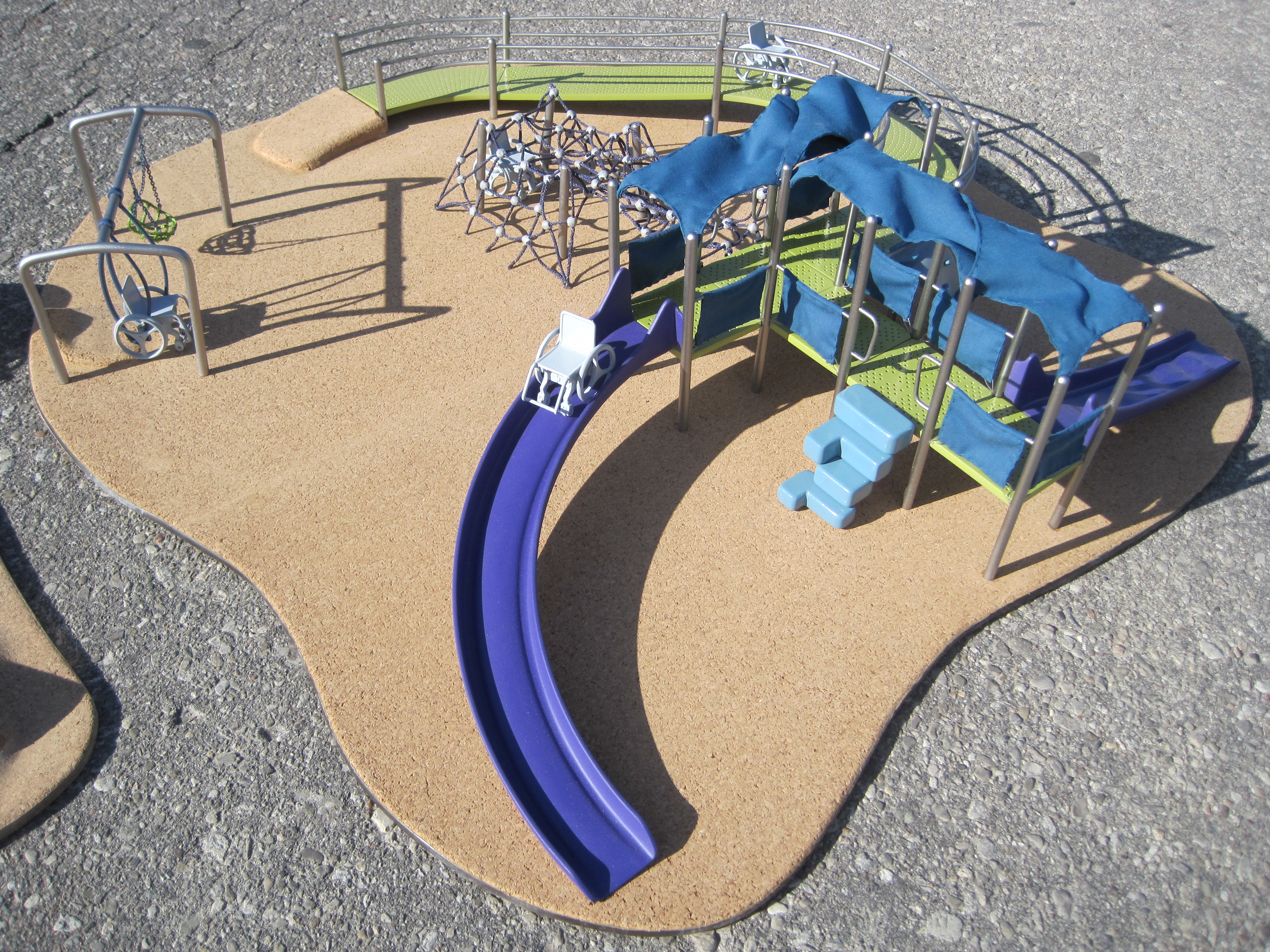 Le terrain de jeux modulaire de 2 600 pi2 conçu par Tanya Nazywalskyj permet aux enfants en chaise roulante de jouer sans assistance, en restant dans leur chaise. Rampes, glissoires, balançoires et grimpeurs à corde élastique de style bungee assurent des heures de plaisir aux enfants avec un handicap physique, mais également à tous les autres.