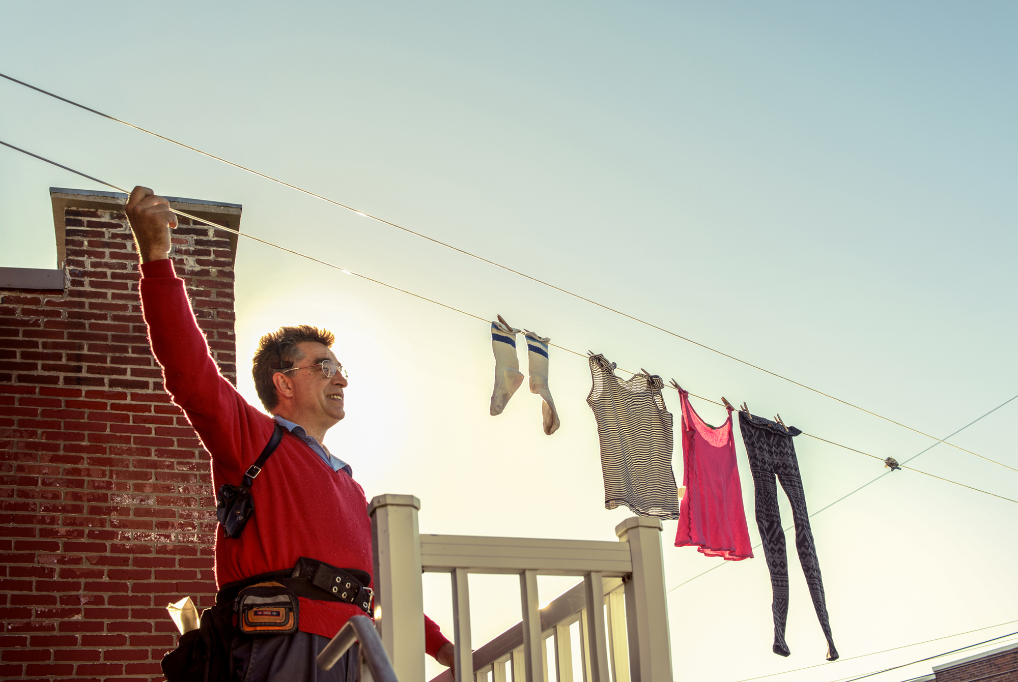 On comprend toute une autre réalité de Montréal quand on se promène dans les ruelles comme je le fais. Toute la vie se passe là. La règle de bienséance qui sévit à l’avant des maisons n’existe pas en arrière. C’est un peu anarchique. Mais c’est vraiment l’aspect environnemental de la corde à linge qui m’a motivé à démarrer mon entreprise. Poser des cordes à linge me permettait de travailler à l’extérieur en étant plus utile à la société.