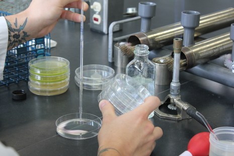 De l’échantillon, un technicien prélève une partie qui sera transformée par une machine reproduisant les actions de broyage de l’estomac et qui sera ensuite déposée sur une gélose afin de permettre aux bactéries qui y sont peut-être présentes de proliférer, avant d’être observée à la loupe. Ce qu’on cherche à déceler : des traces d’E. Coli et de Salmonella, entre autres.
