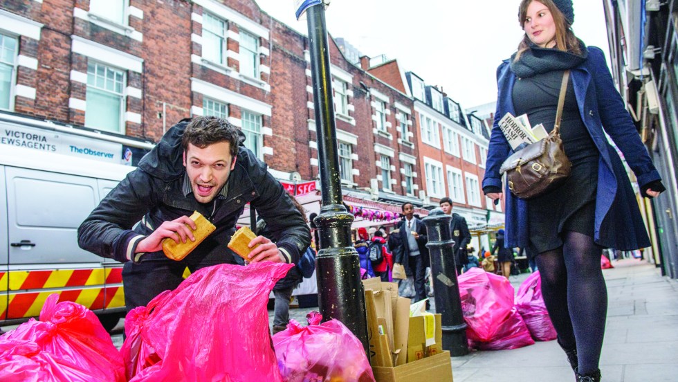 Les statistiques surprennent : plus de 50 % de la nourriture produite serait gaspillée. Notre journaliste à Londres Kieron Monks a mordu dans le problème. «Arrêtez! Revenez ici!» Mon complice et