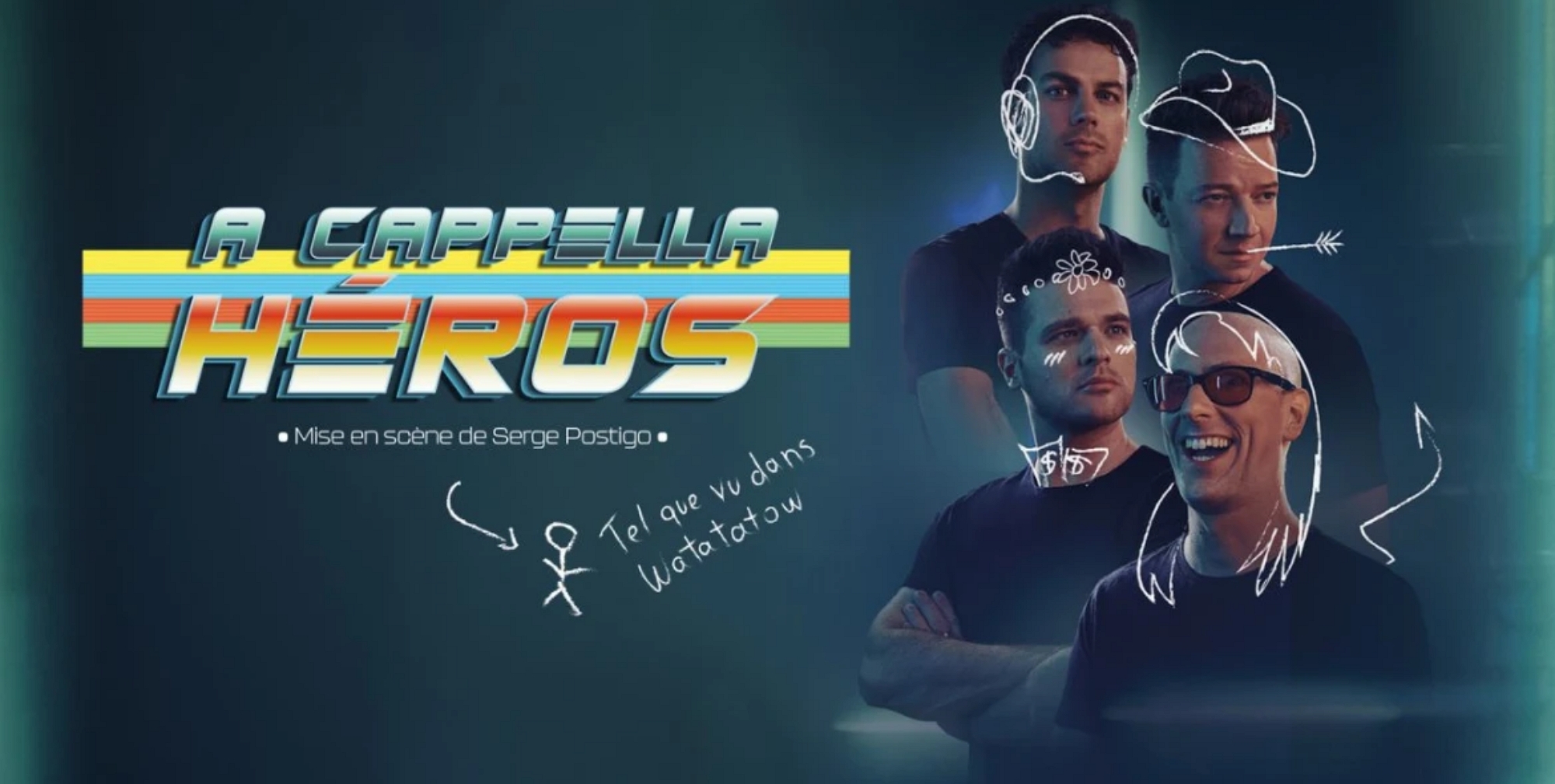 Le groupe de musique A Cappella QW4RTZ présente un feu roulant de sketchs, de cascades vocales et de numéros originaux mis en scène par Serge Postigo.