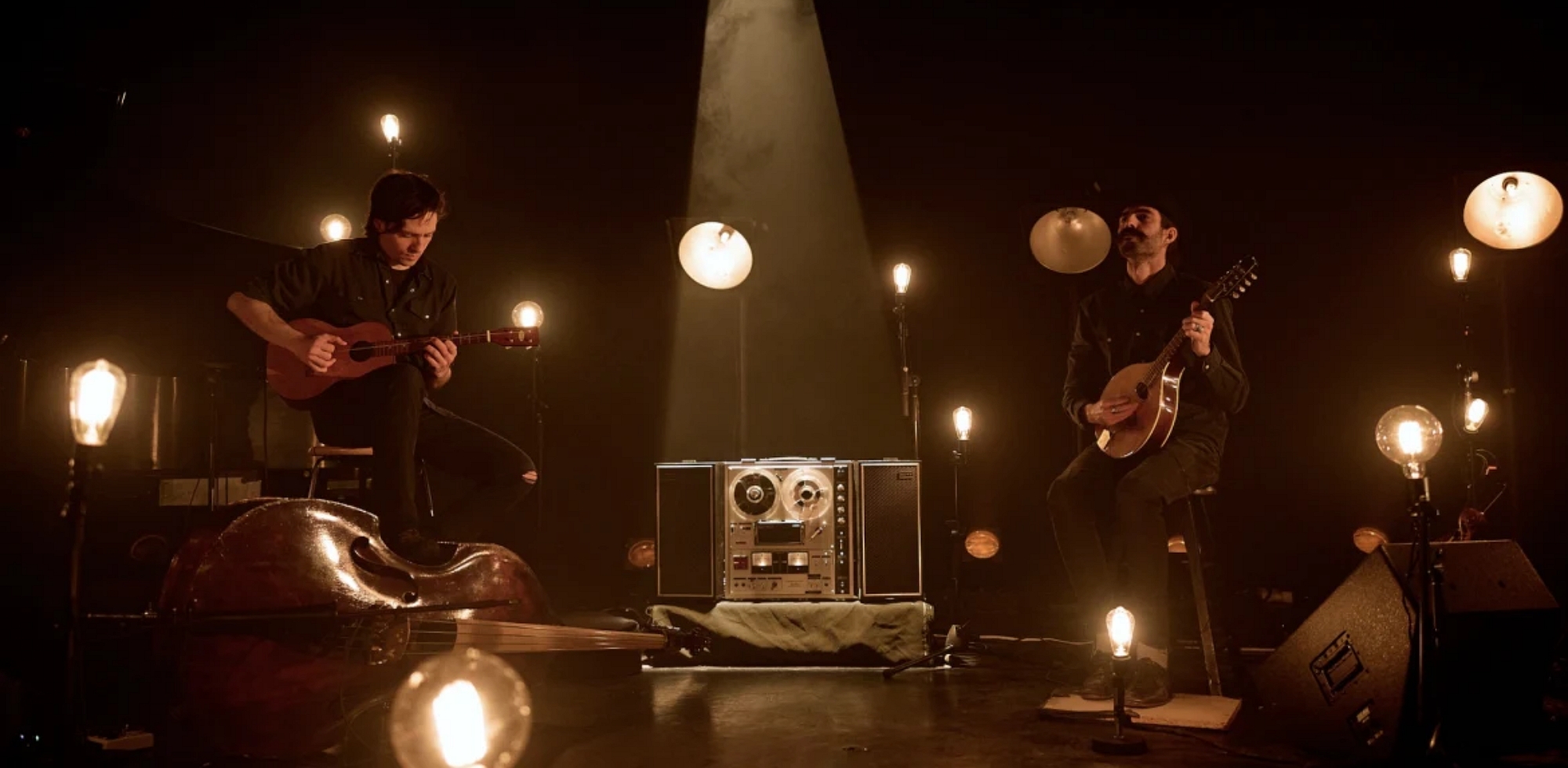 Ces dernières sont directement activées sur scène à l’aide de différents lecteurs analogiques, comme si les deux musiciens avaient pu se glisser entre les mailles du temps à la rencontre de ces voix et de leurs histoires pour les accompagner.