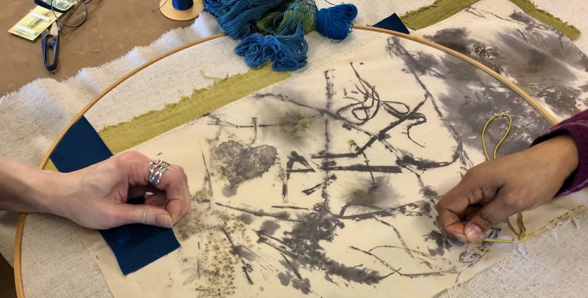 Accompagné de membres du projet de recherche Apprendre avec le Saint-Laurent, venez partager vos récits sur le fleuve et participer à une œuvre collective de broderie, intégrant teinture naturelle, éco-impression et cyanotype (procédé photographique).