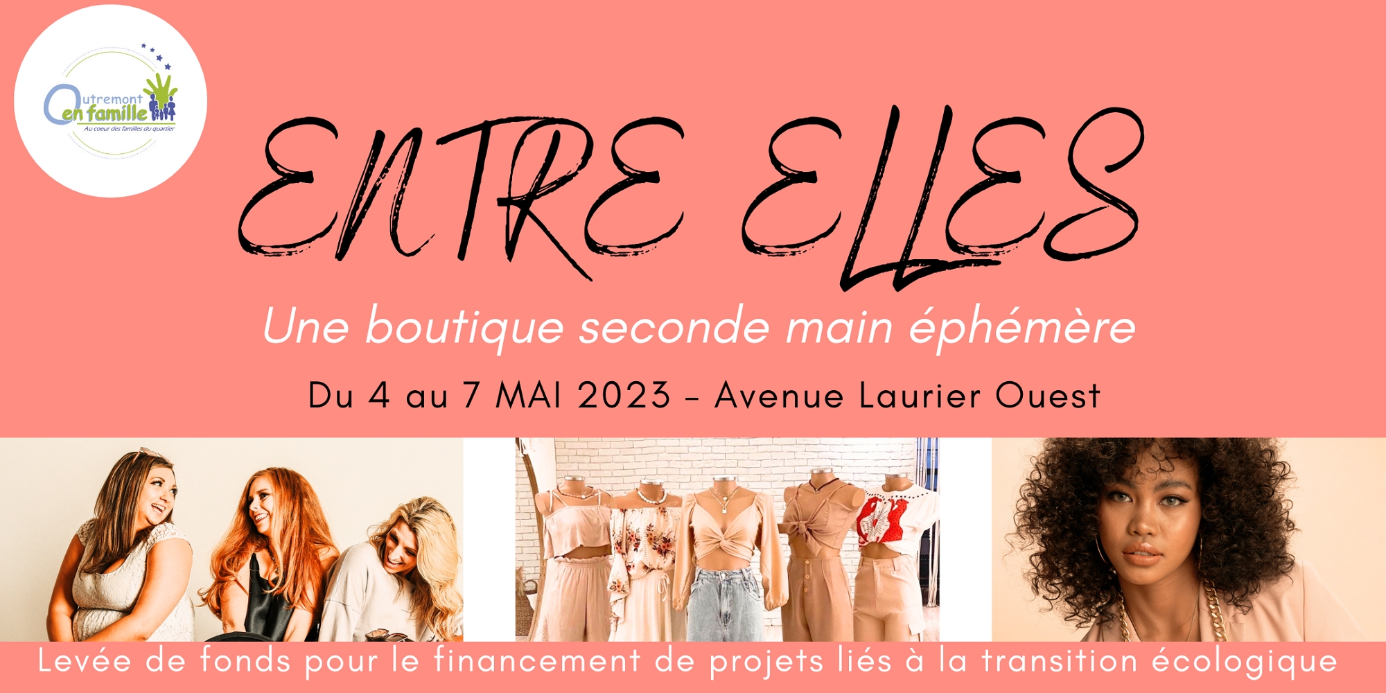 Du 4 au 7 mai 2023 au 1090 avenue Laurier Ouest, la boutique éphémère Entre Elles dévoilera des fins de séries de vêtements féminins de boutiques locales, des pièces de créateurs et des vêtements seconde main de qualité.