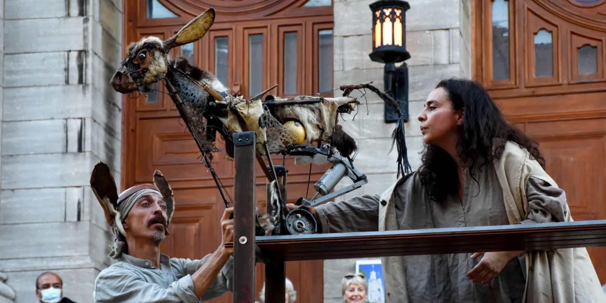 Une déambulation qui célèbre la vie et la mort, la souffrance et la joie. Une œuvre qui invite à la fois à la réjouissance et à la contemplation. Une nouvelle version de l’ancienne Fête de l’âne qui propose d’embrasser les paradoxes comme moyen de nous réconcilier avec notre être humain-animal.