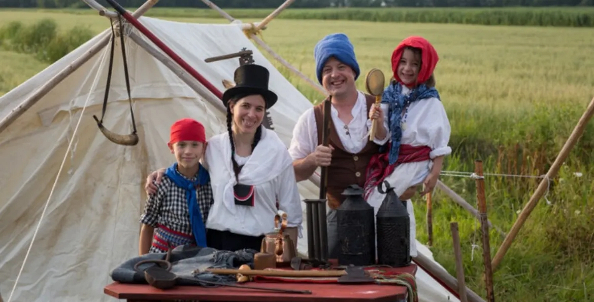Cette animation met en scène une famille: le papa canadien-français, la maman abénaquise et leur enfant métis. Toute la famille participe à échanger avec vous pour vous faire connaître le mode de vie de l’époque de la traite avec tipi, tente à appentis, costumes, jeux et objets d’échange du passé. Comme elle voyage de village en village, cette famille pittoresque du 19e siècle en a beaucoup à vous raconter! Un voyage dans le temps garanti!