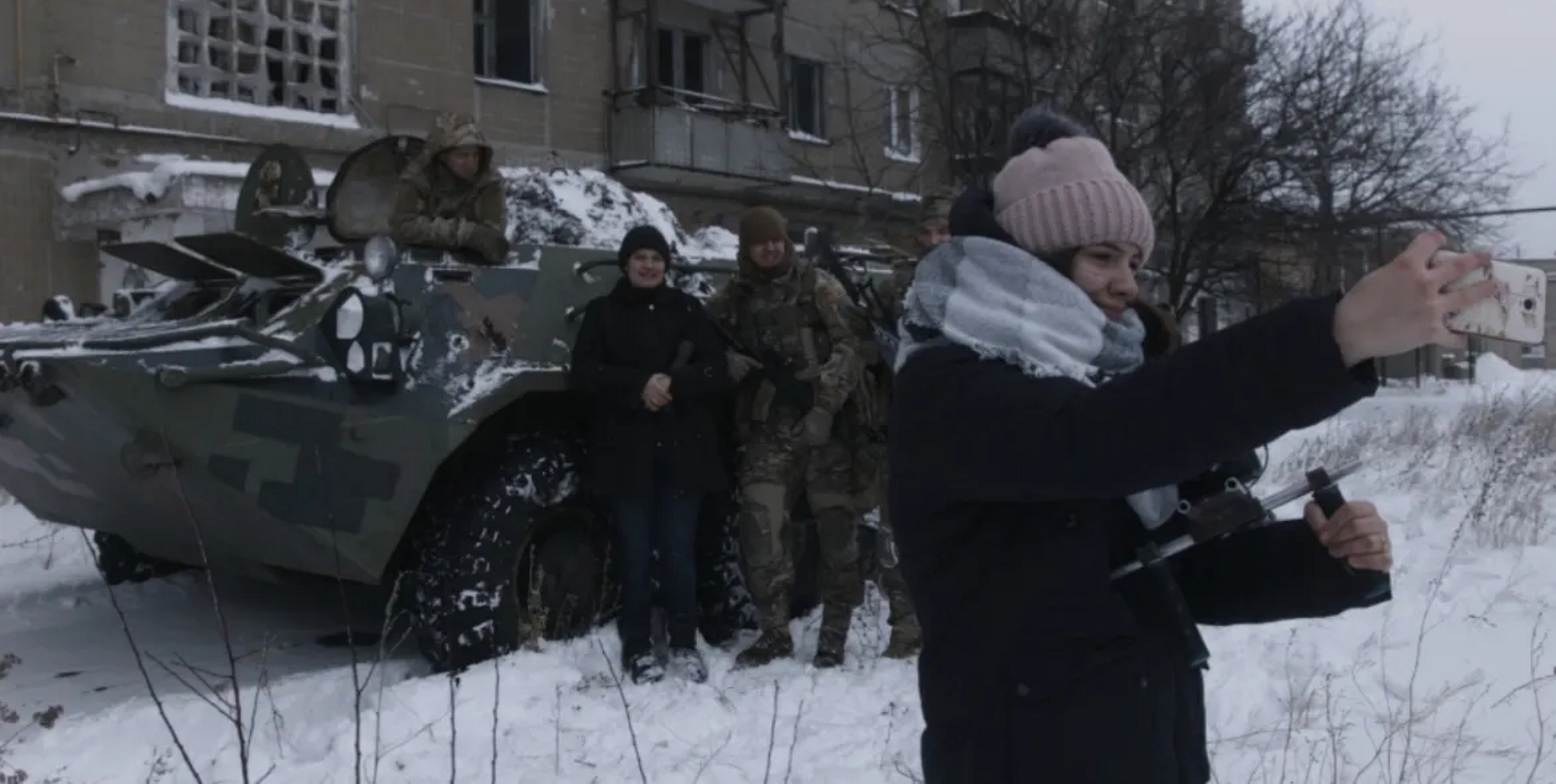 Iels décident de tourner un film sur le quotidien d’une ville détruite. À cette fin, iels transforment le salon en studio et demandent aux soldats de prendre place devant la caméra. Il en résulte un document émouvant sur la vie en marge de la paix et de la sécurité.