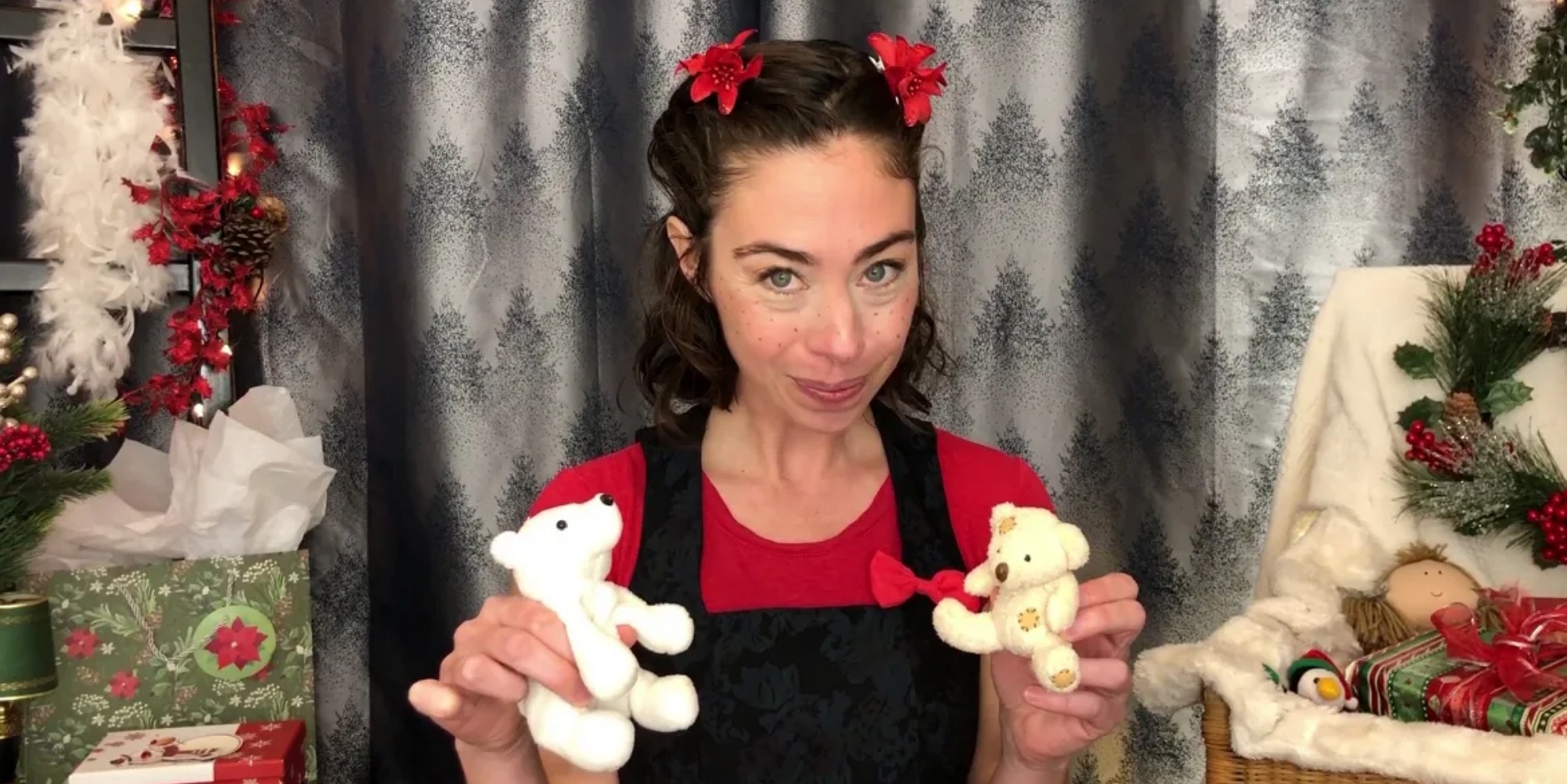 Mademoiselle Emilia vous charmera avec ses histoires de Noël préférées. Deux contes fabuleux aux saveurs du temps des fêtes : «Le cadeau perdu» et «Frisson, Bagatelle et l’ours blanc» entraîneront les enfants dans des aventures magiques et palpitantes.