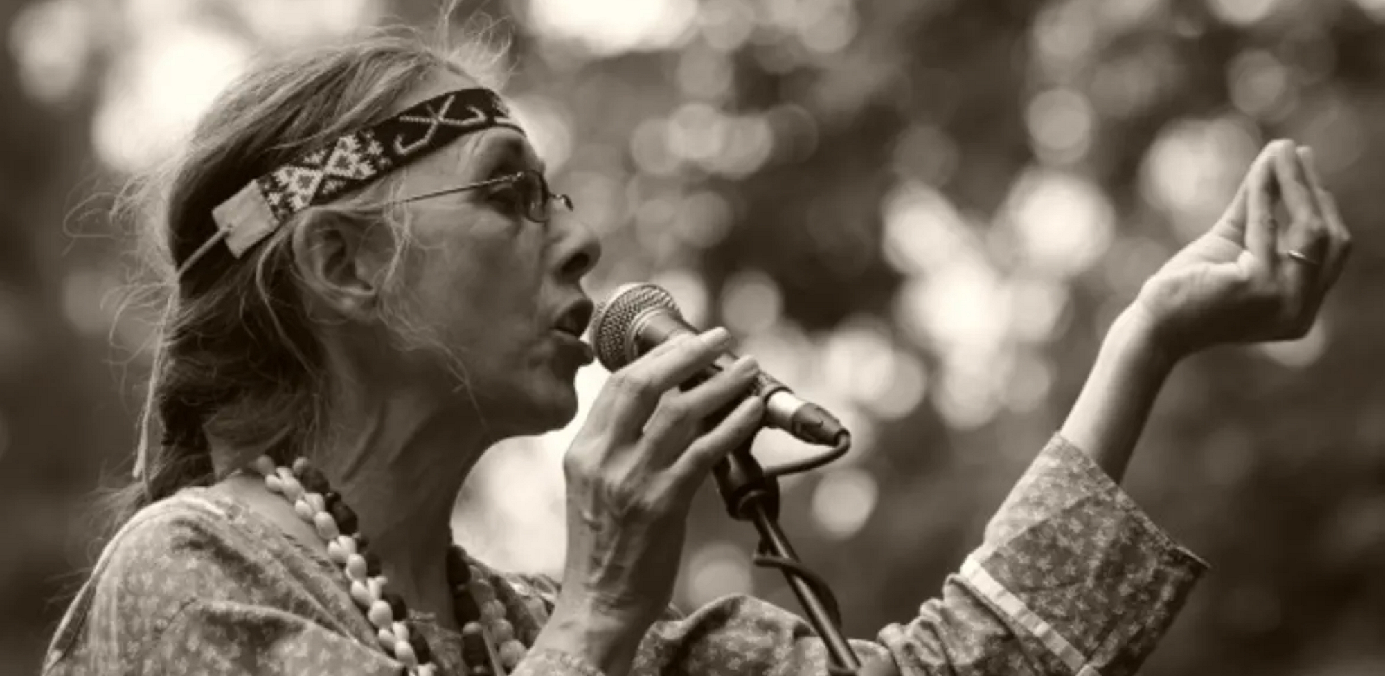 La conteuse, Nicole O’Bomsawin, est membre de la Première nation Abénakise et vit à Odanak, son village natal.