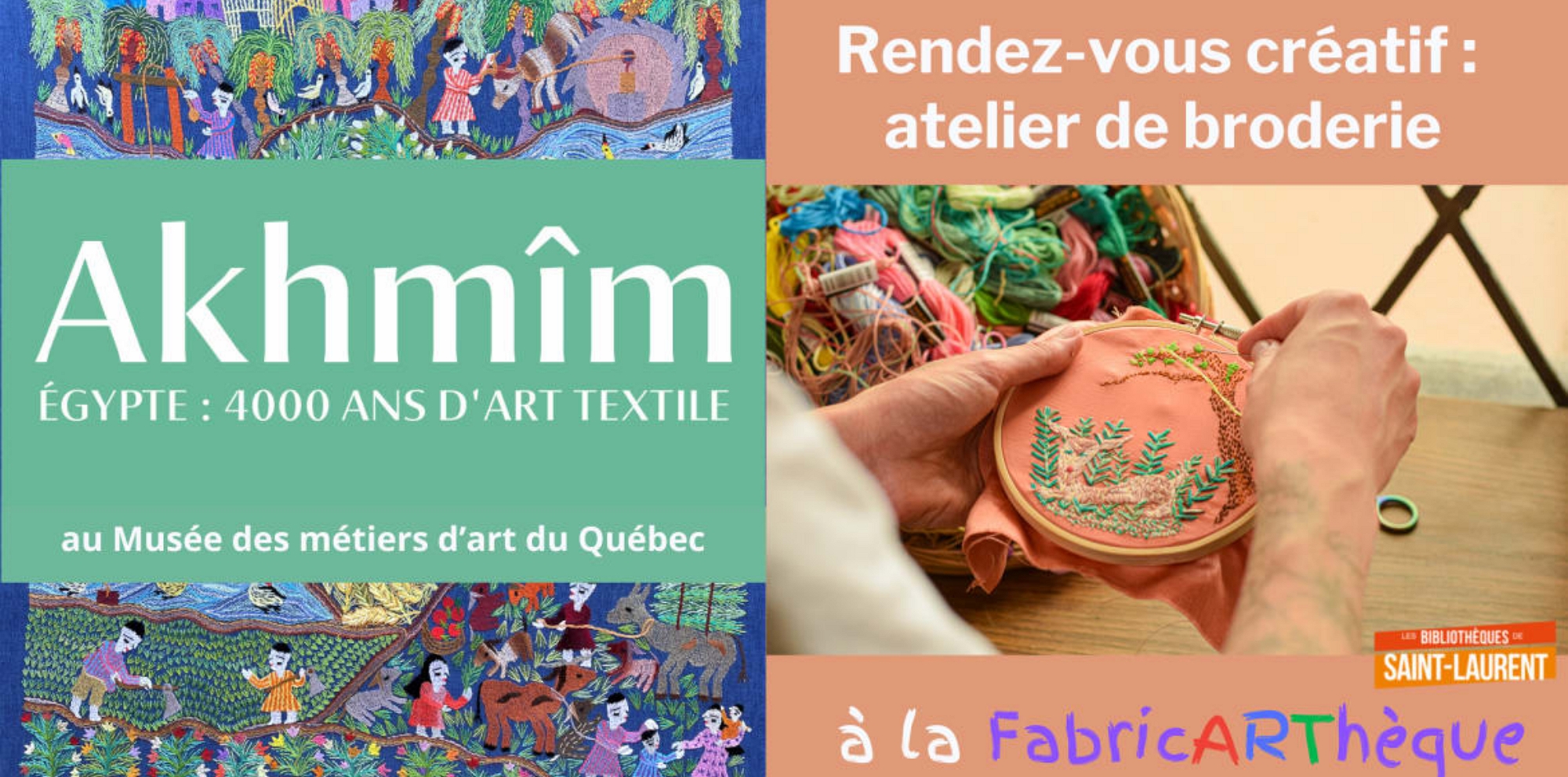 Découvrez la broderie égyptienne lors de la visite guidée de l’exposition ‘’Akhmîm, Égypte : 4000 ans d’art textile’’ au Musée des Métiers d’art du Québec et apprenez ensuite à broder à la manière des anciens maîtres égyptiens dans le cadre d’un atelier dirigée à la FabricARThèque.