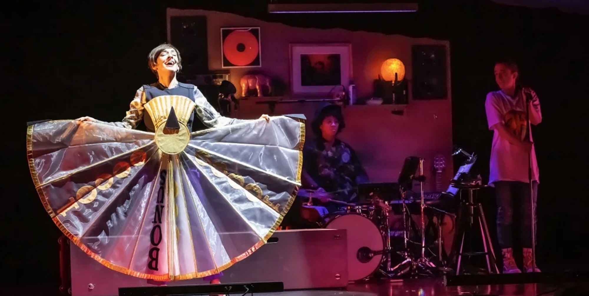Sur scène, les comédiens Geneviève Alarie, Gabriel Favreau, Ines Talbi et la musicienne Laurie Torres donnent vie aux paroles de Rébecca Déraspe et à la musique de Benoit Landry et Chloé Lacasse.