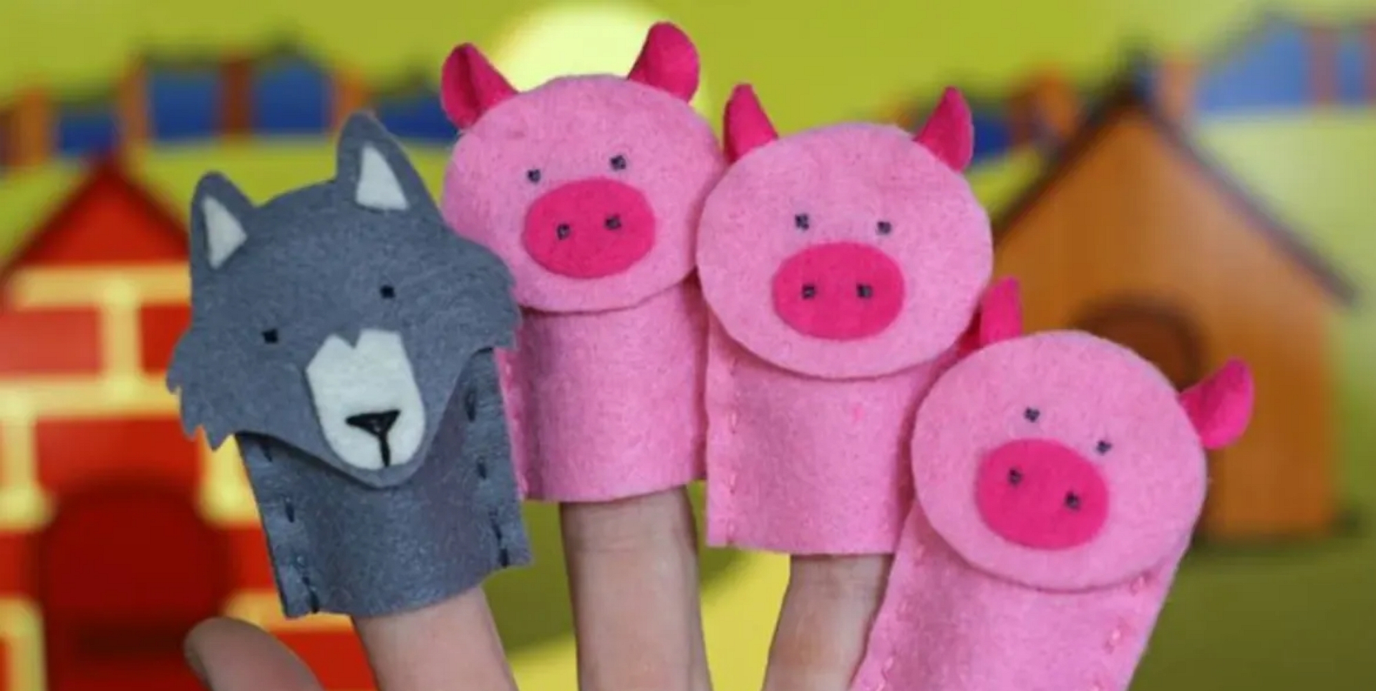 Venez créer votre marionnette à doigt inspirée des Trois petits cochons !