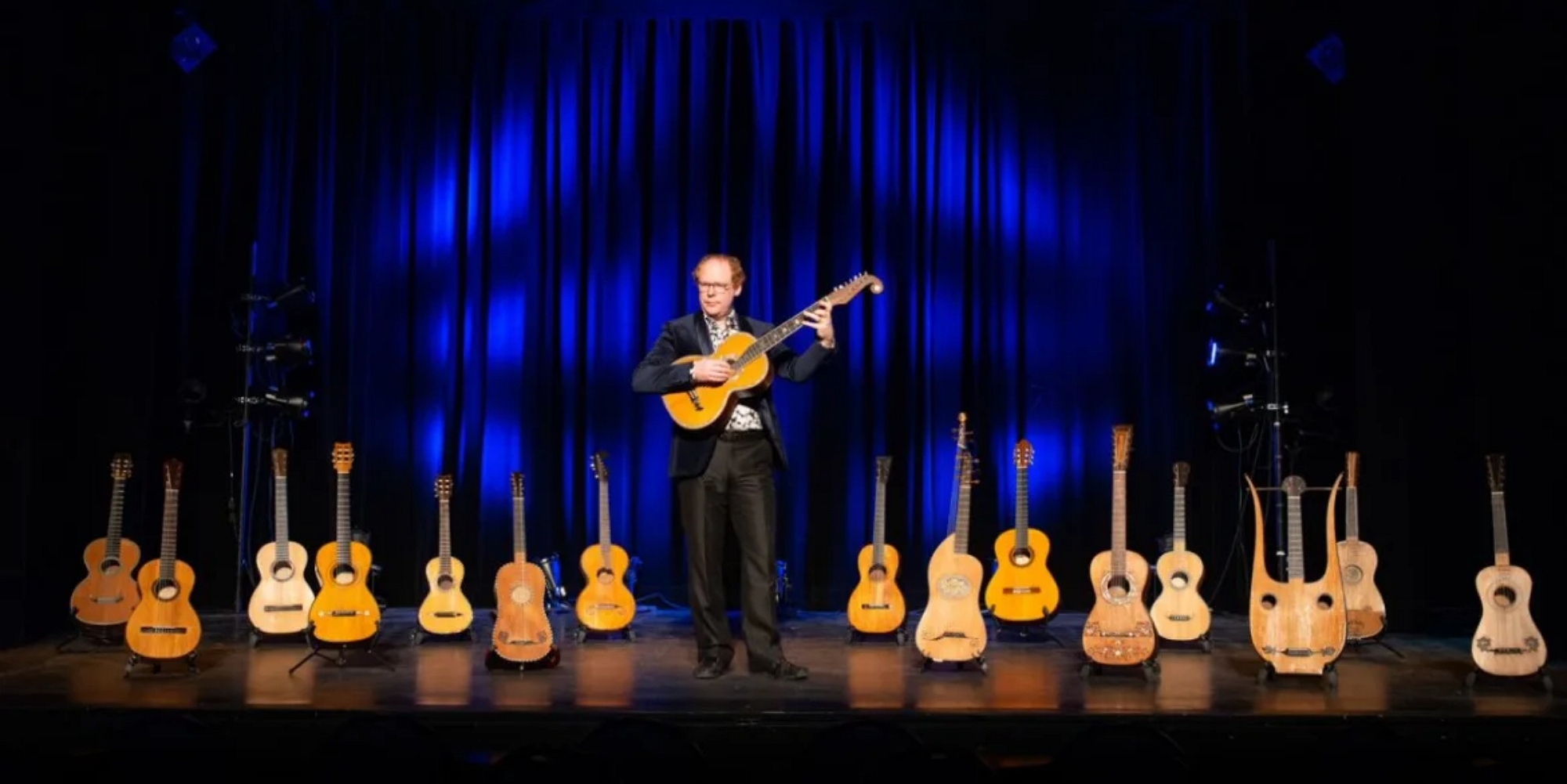 Ces instruments rares font partie de son importante collection privée. Il met chaque guitare en valeur en choisissant un répertoire qui la caractérise. Parce que chacune à une histoire à raconter!