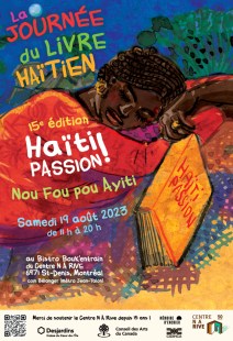 C’est avec beaucoup de fierté et d’enthousiasme que le Centre N A Rive convie les petits et grands lecteurs à la 15e édition de la Journée du livre haïtien qui se tiendra le samedi 19 août 2023, de 11h à 20h, au Centre N A Rive à Montréal, 6971, rue Saint-Denis, Montréal, Québec.Venez rencontrer les auteurs et les autrices qui décrivent, à leur manière, leur passion pour Haïti!