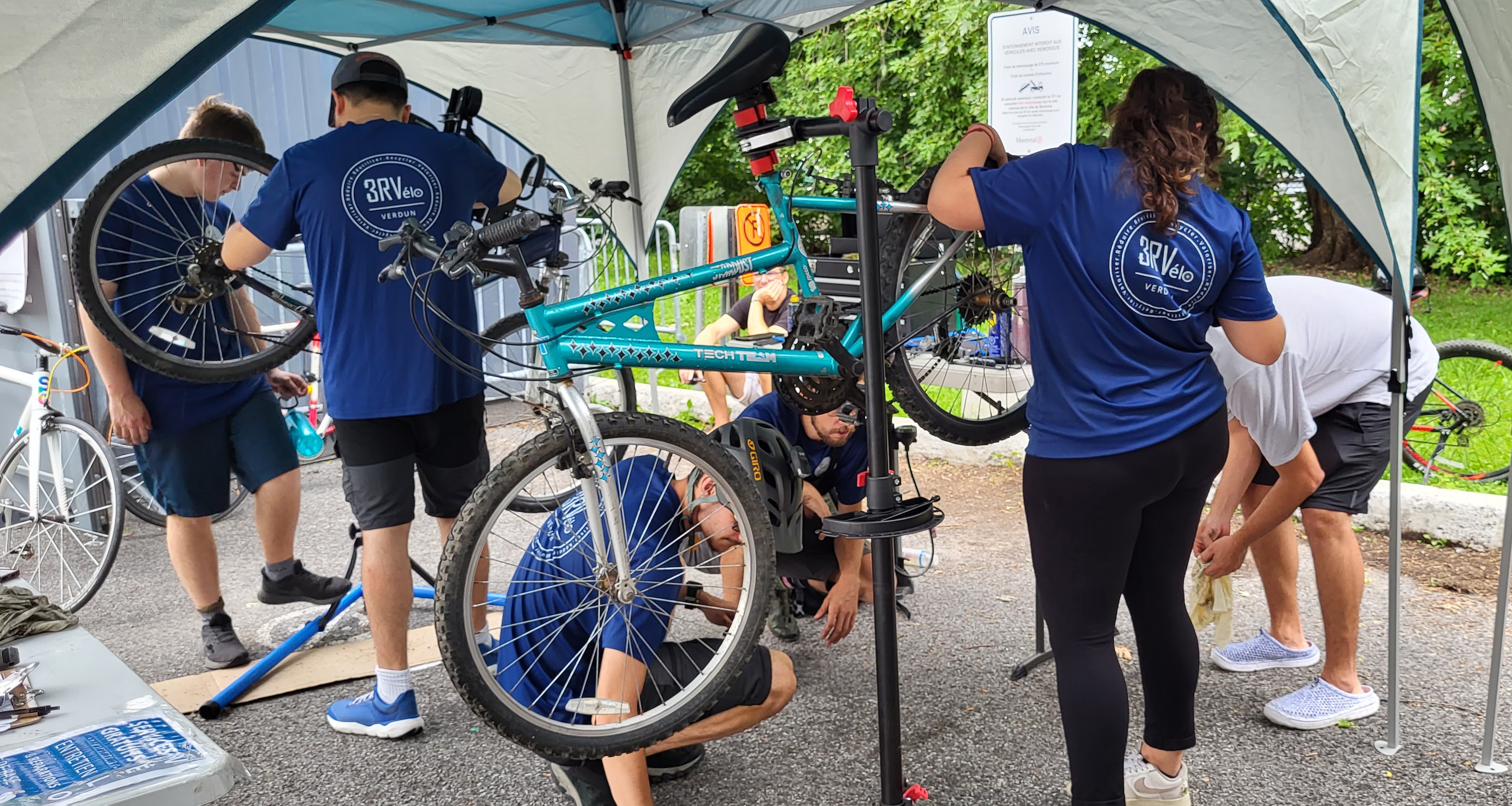 Sous la supervision d’un mécanicien de vélo, les volontaires de 3RVélo Verdun offriront des services gratuits d’entretien et de réparation de base aux personnes qui se présenteront au kiosque avec leur vélo.
