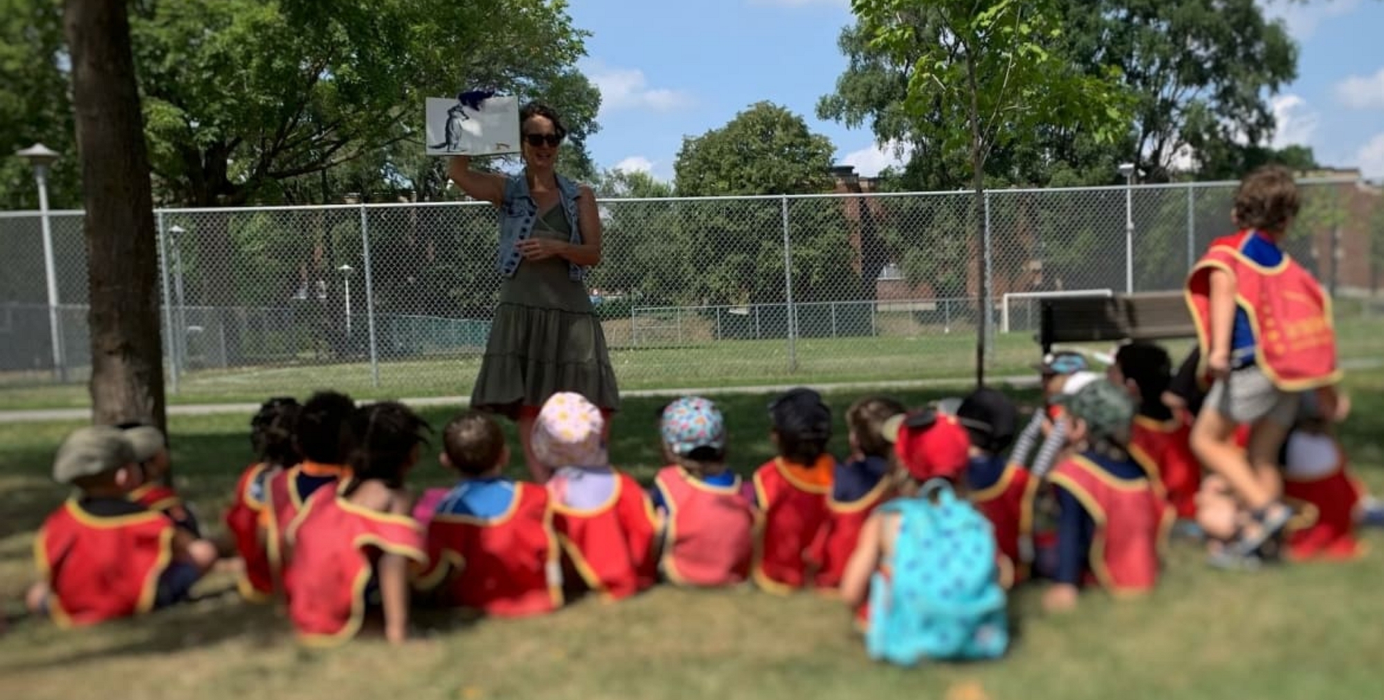La bibliOtente est une heure du conte offerte aux tout-petits par une animatrice dans un parc.