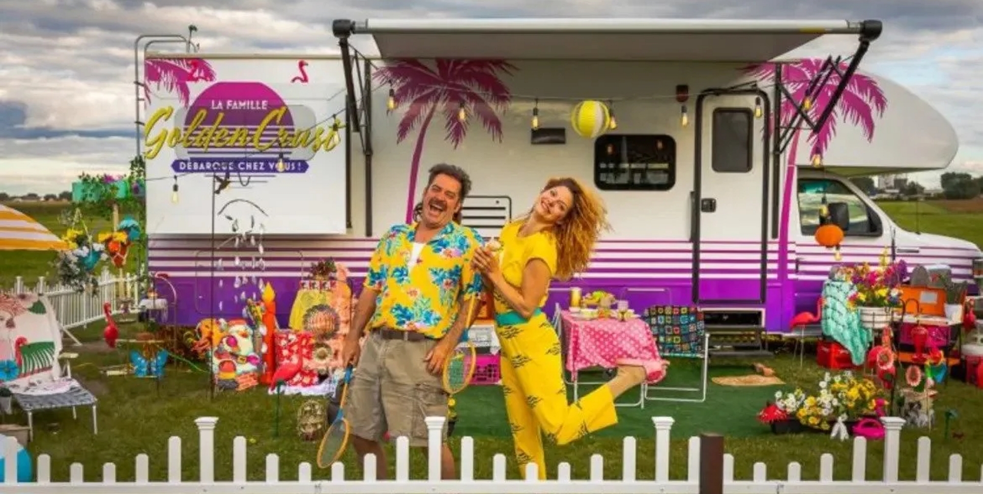 Venez rencontrer Grace (Tamara Bousquet) et son chum, Kevin (Philippe Trépanier), fraîchement de retour de leur flamboyante Floride, les GoldenCrust stationnent la Golden Mobile dans notre arrondissement.