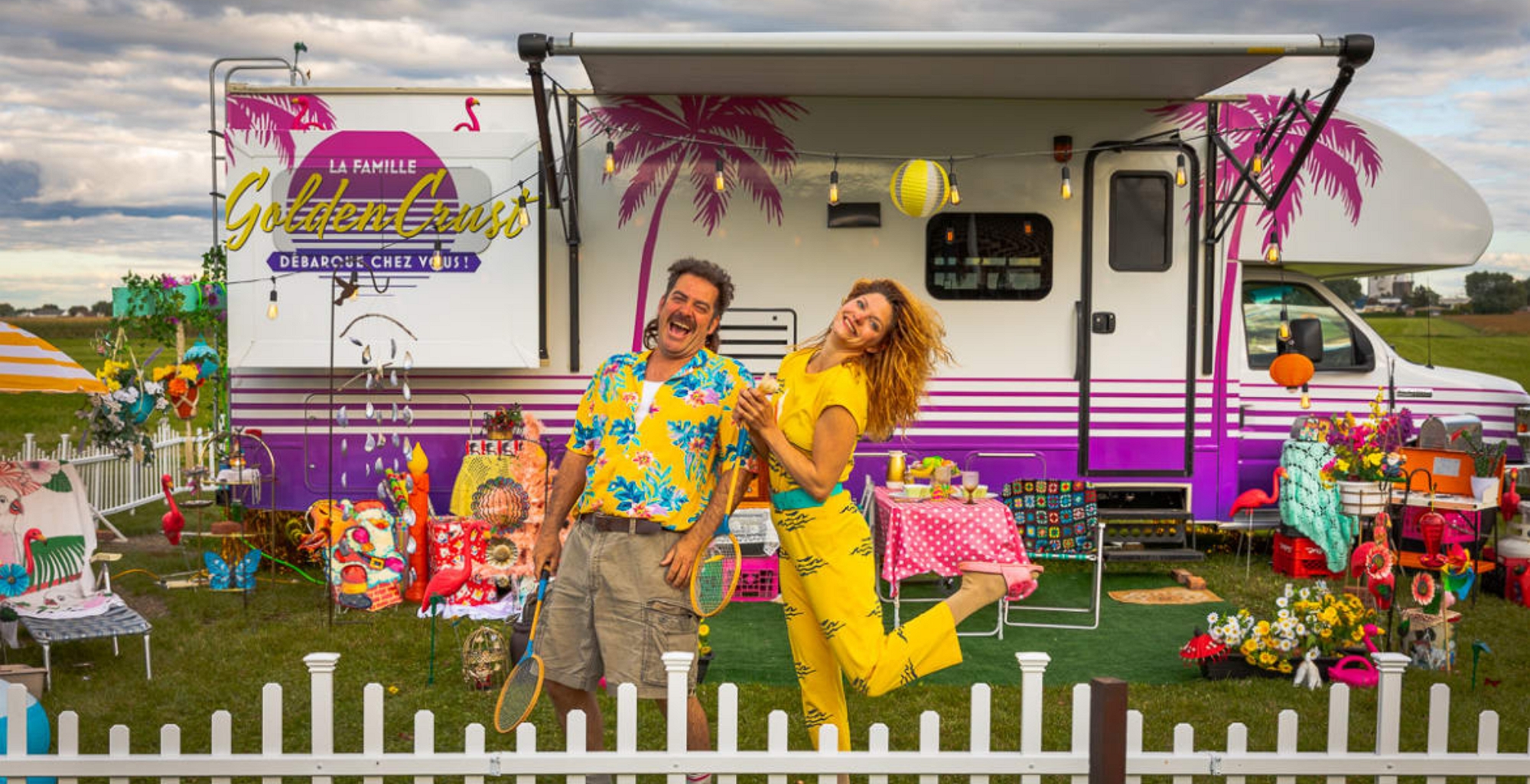 Grace et Kevin sont d’attachants « snowbirds » aux talents inusités. À bord de leur magnifique motorisé, ils débarquent pour vous offrir un spectacle de comédie et de cirque digne des plus beaux campings de Floride.