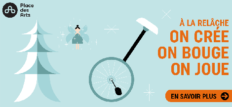 Une foule d’activités gratuites sont proposées par la Place des Arts durant la relâche scolaire. Au programme : des spectacles de contes, l’exposition interactive de contes autochtones Les Fabuloscopes, des ateliers de cirque avec l’École de cirque de Verdun, des séances de bricolage et des ateliers de créations culinaires avec la Tablée des chefs.