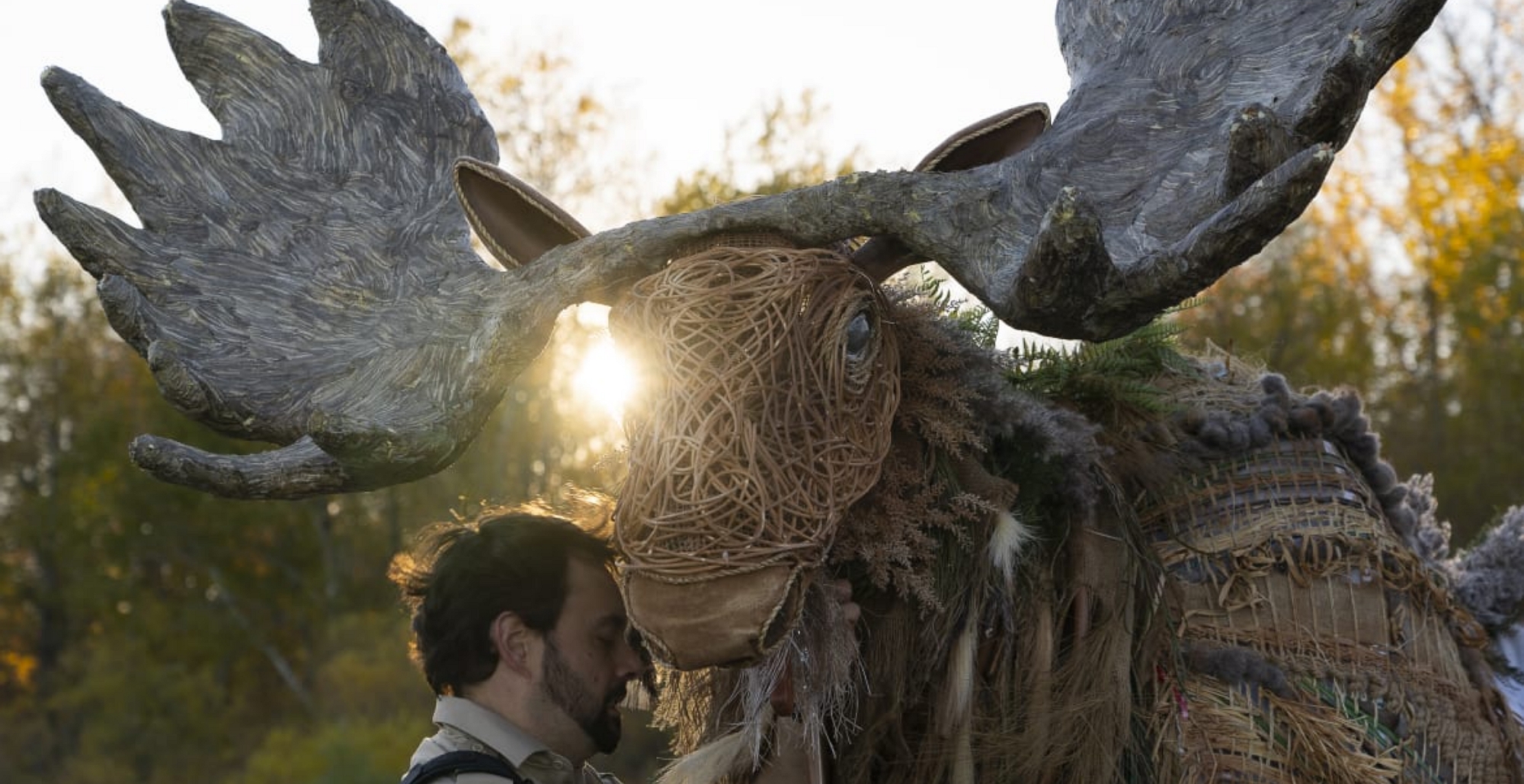 Borée, ce majestueux Orignal, apparaît. Il transporte avec lui les sons, l’essence et les odeurs de la nature. Durant cette manifestation, on vit avec Borée les quatre saisons sur le plan tant sonore, olfactif que poétique. Il tente de trouver sa place au milieu de ce béton envahissant et des quelques petits morceaux de verdure lui rappelant son habitat naturel. Cette aventure fait vivre aux spectateurs le cycle de la nature, elle transporte les bruits, les parfums, les couleurs des saisons. Prenons le temps de se laisser porter par cette poésie de la forêt.