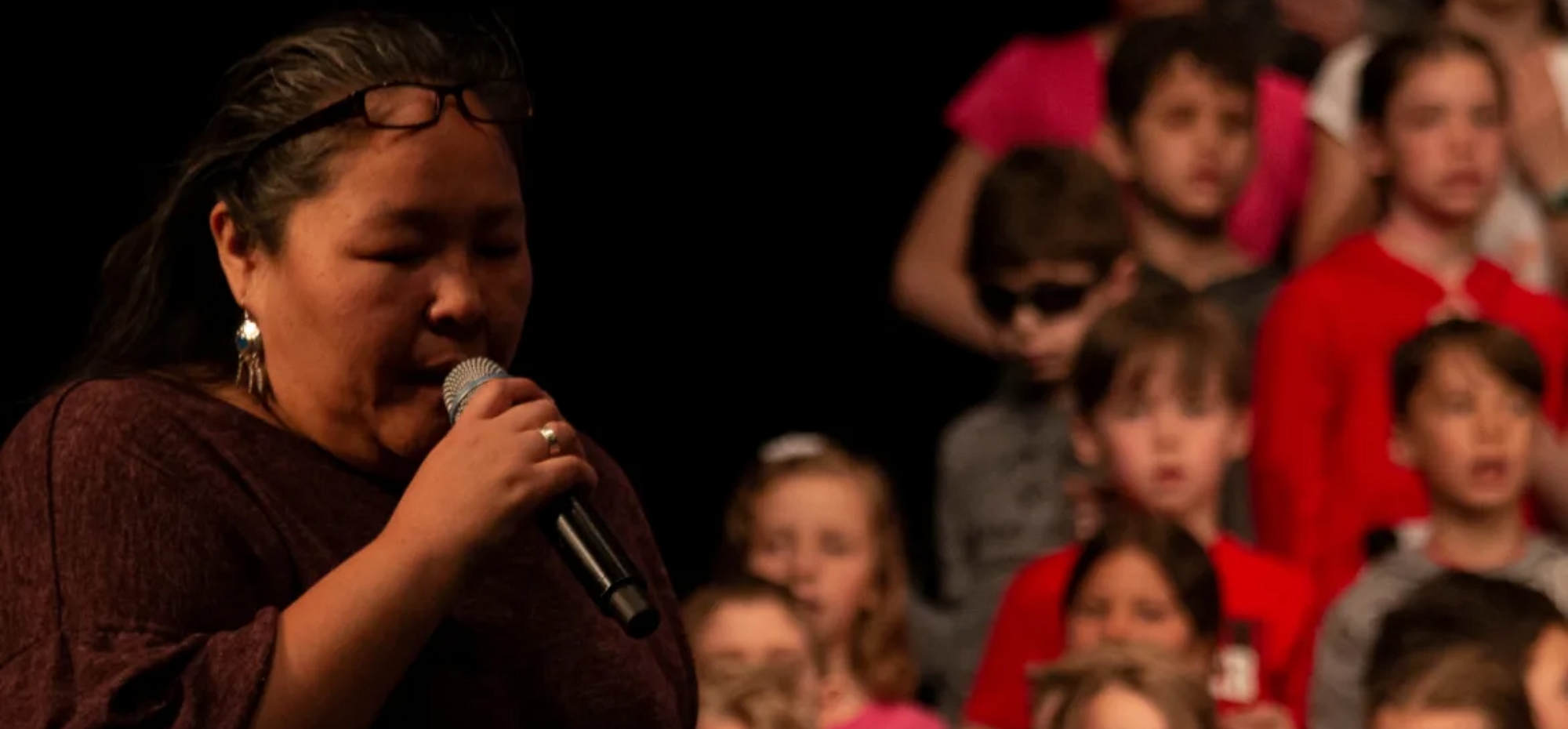 L’activité débute par une prestation de chant de gorge inuit des chanteuses Louisa Quaritalyu et Sierra Segalowitz. Les participant.e.s auront ensuite la chance de découvrir l’œuvre Les grands espaces, écrite par Katia Makdissi-Warren en y intégrant, par leur voix et leurs mouvements, des éléments de la nature : bruits du vent, de la pluie, du cri des oies et des hululements des hiboux. Le tout se conclut dans une prestation de groupe dont la beauté touche autant le cœur des petits que des grands.