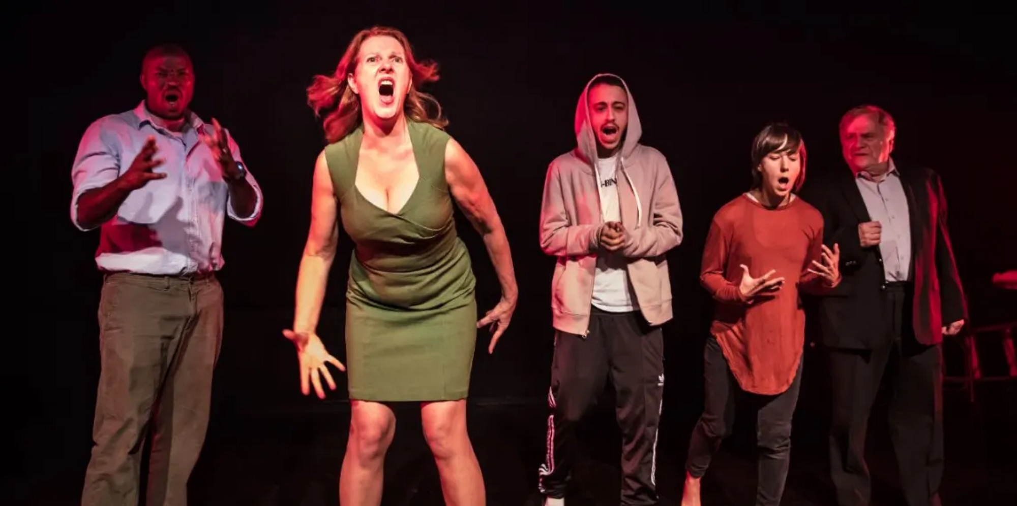 Cette pièce est une enquête théâtrale portée par la metteure en scène et cinq individus qui, comme elle, ont refait leur vie à Montréal. Devant vous, une comédienne hollandaise, une danseuse québécoise, un joueur de rugby rwandais, un rappeur antillais et un homme d’affaires retraité juif.