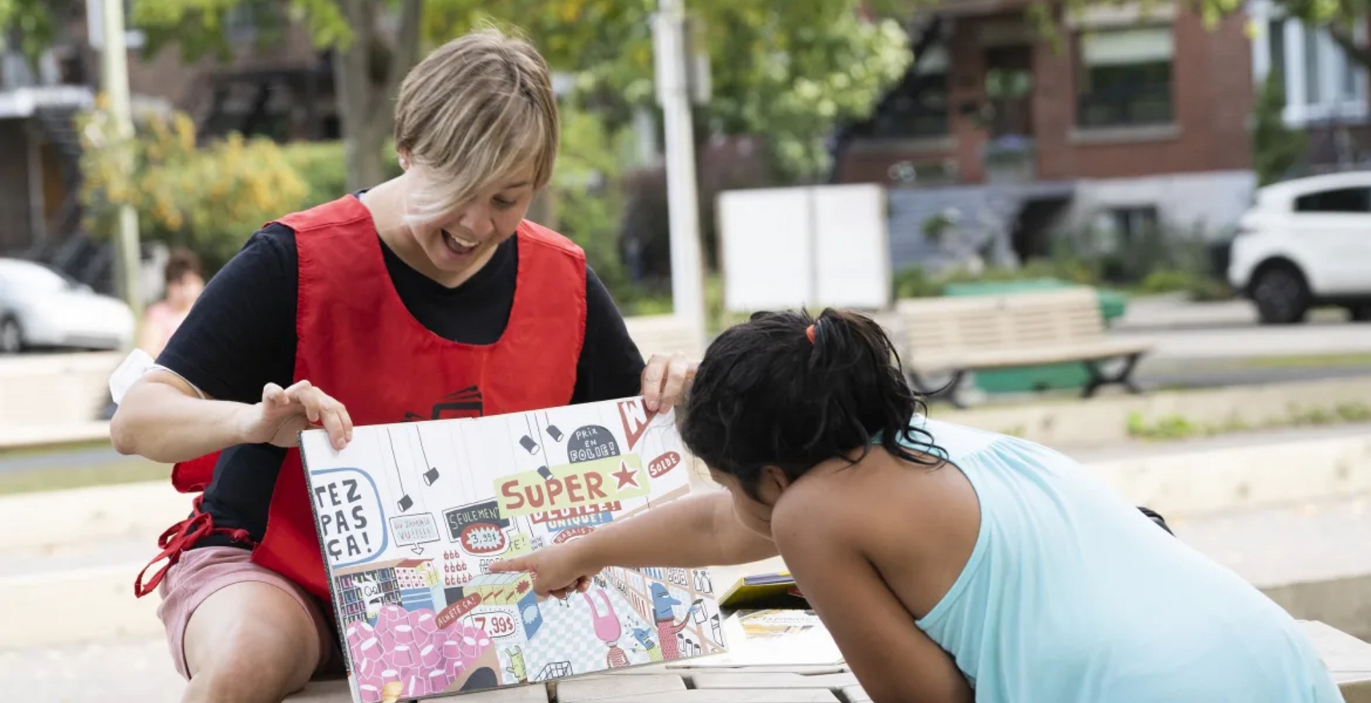 Livres dans la rue s’adresse aux enfants de 4 à 12 ans qui pourront s’initier au plaisir de la lecture grâce à des animatrices et animateurs passionnés de livres. Ceux-ci arpentent avec leurs sacs à dos remplis de livres plus d’une cinquantaine de parcs montréalais, tous les après-midis et débuts de soirée, du lundi au jeudi.