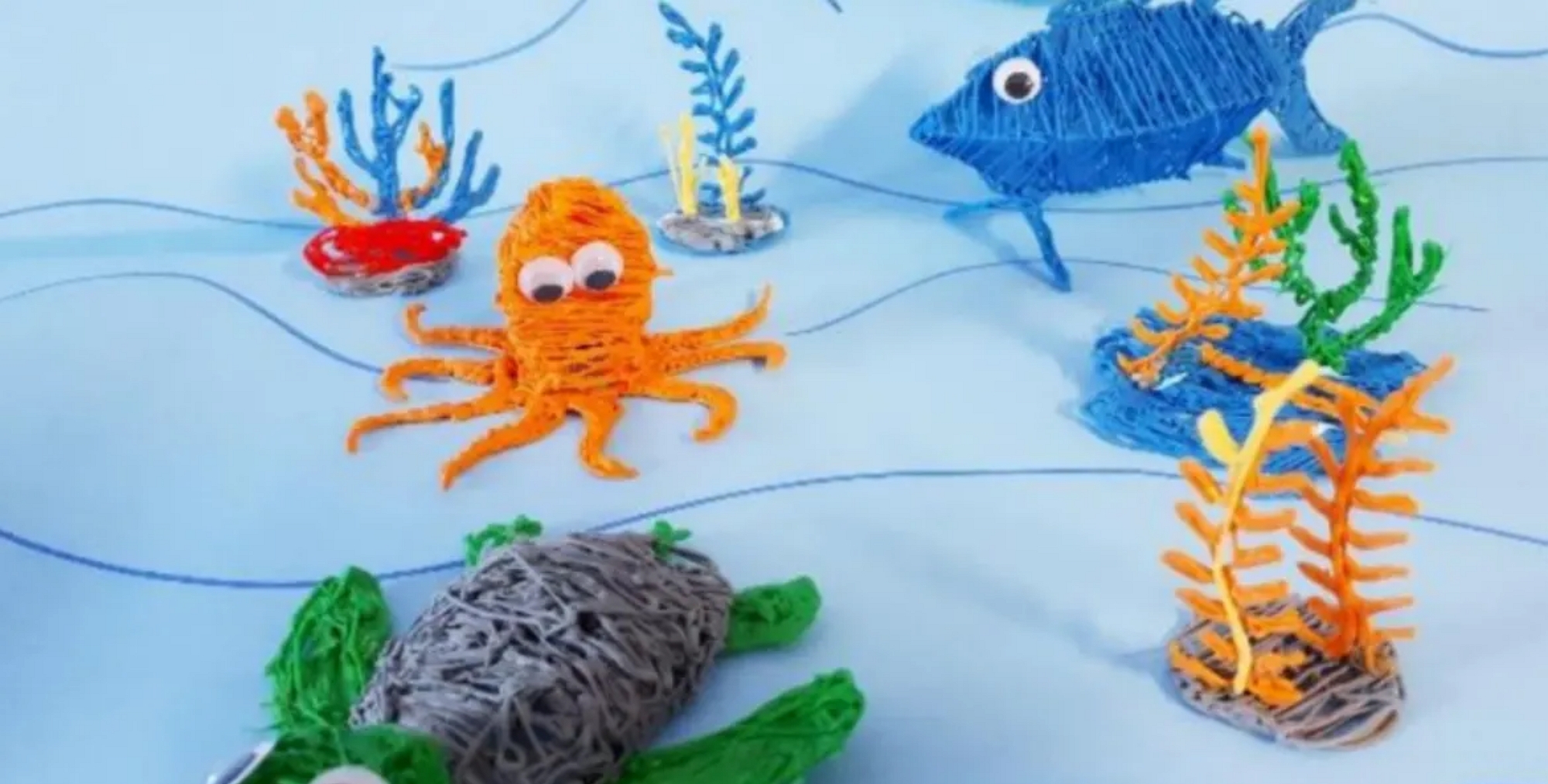 Les enfants auront du plaisir à créer des animaux marins au moyen d’un crayon 3D.