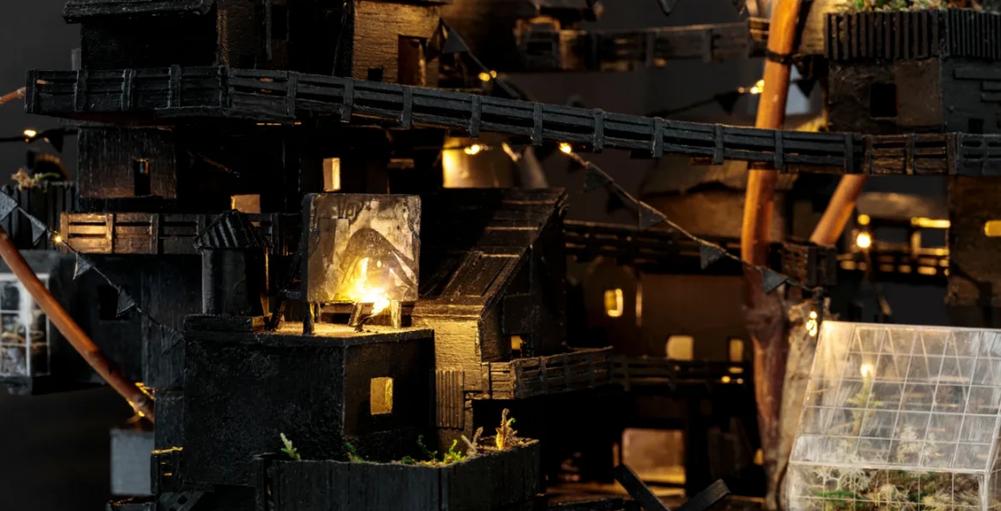Offrant un basculement continuel entre micro et macro, les œuvres agissent comme des objets de contemplations où se chevauchent nature, architecture et éléments de mobilier domestique. La miniaturisation du connu, du lieu de vie, de l’habitation est une constante dans son travail.