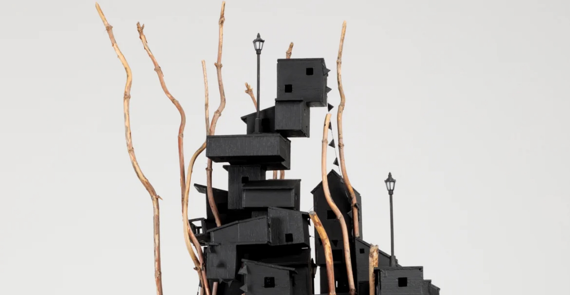 Par la prédominance du noir mat, de l’intégration d’éclairage ténu et l’ajout de discrètes nébuleuses, les œuvres réfèrent à la nuit et aux déambulations nocturnes. La maison suggère une mise en abîme où l’objet observé contient en lui-même une multitude d’autres objets inaccessibles. Les sculptures attisent cette envie profondément humaine d’observer l’intérieur des choses; le regard se déplaçant et cherchant au travers des ouvertures quelque chose à découvrir.