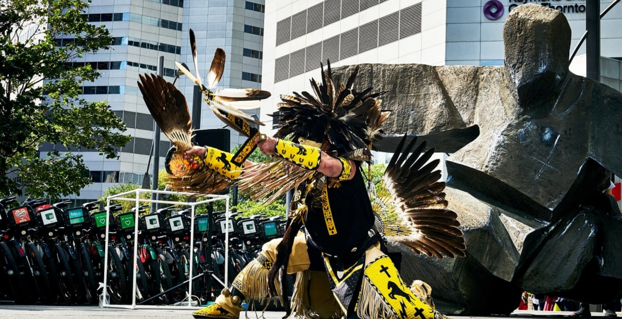 Alliant danse traditionnelle autochtone, danse urbaine et danse contemporaine, la chorégraphe Barbara Kaneratonni Diabo, entourée de danseurs et d’un chanteur, propose une nouvelle réflexion sur la relation entre la ville et la terre nourricière.