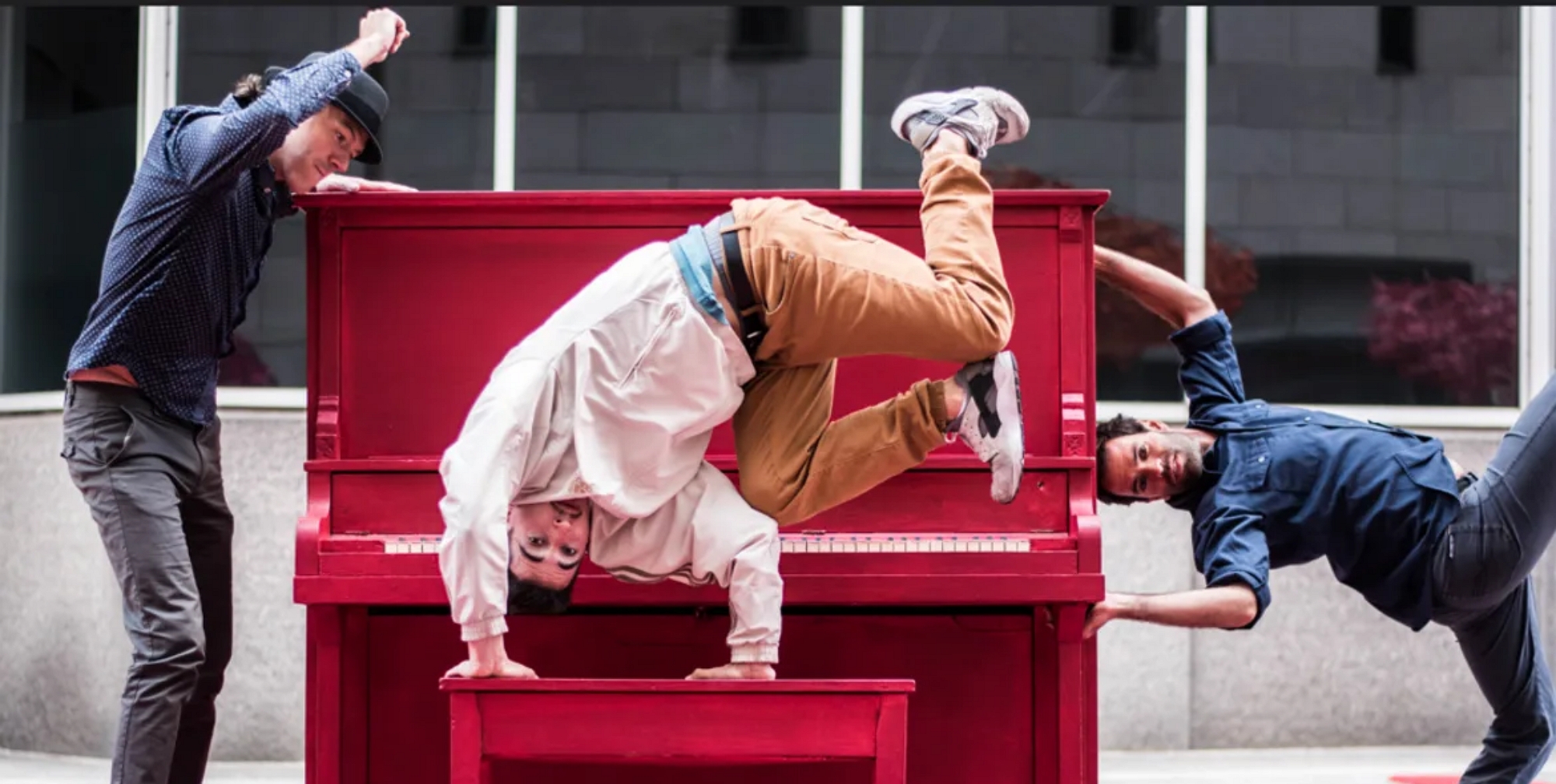 Une rencontre impromptue entre un danseur contemporain, un danseur urbain et un pianiste jazz, s’amusant autour d’un piano public.