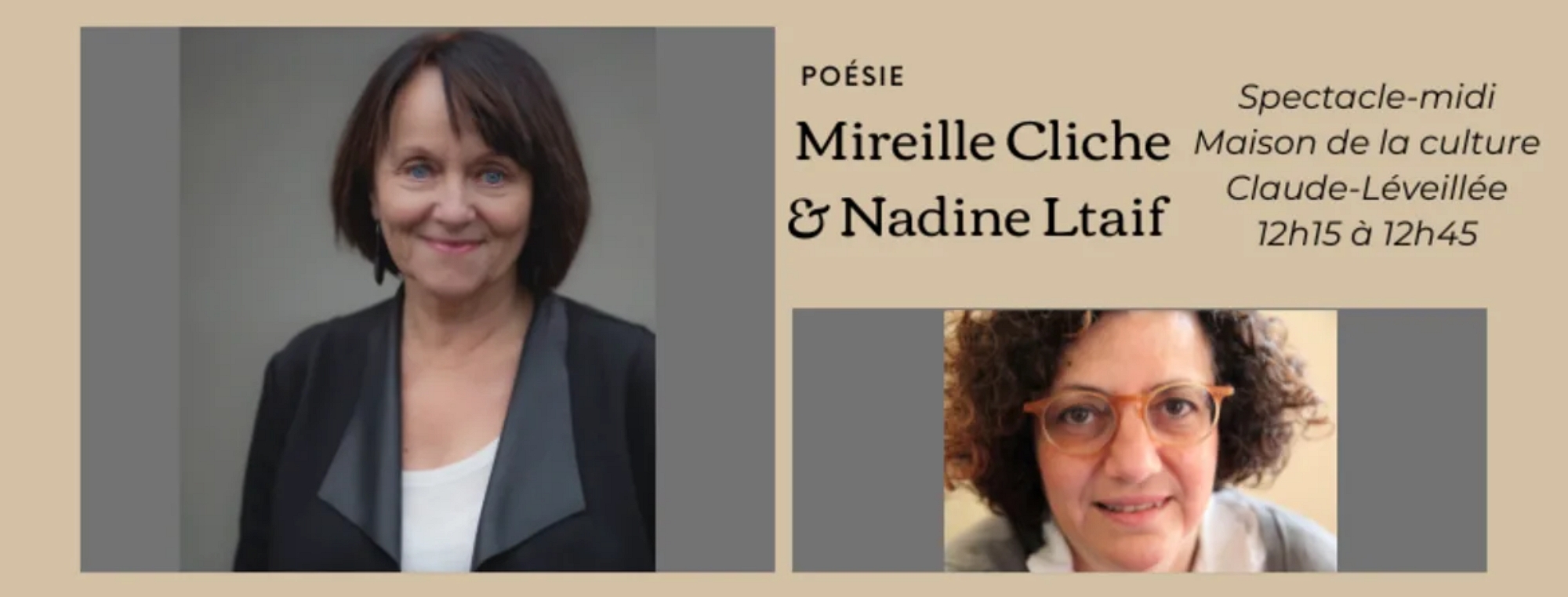 Poésie-midi : Mireille Cliche & Nadine Ltaif