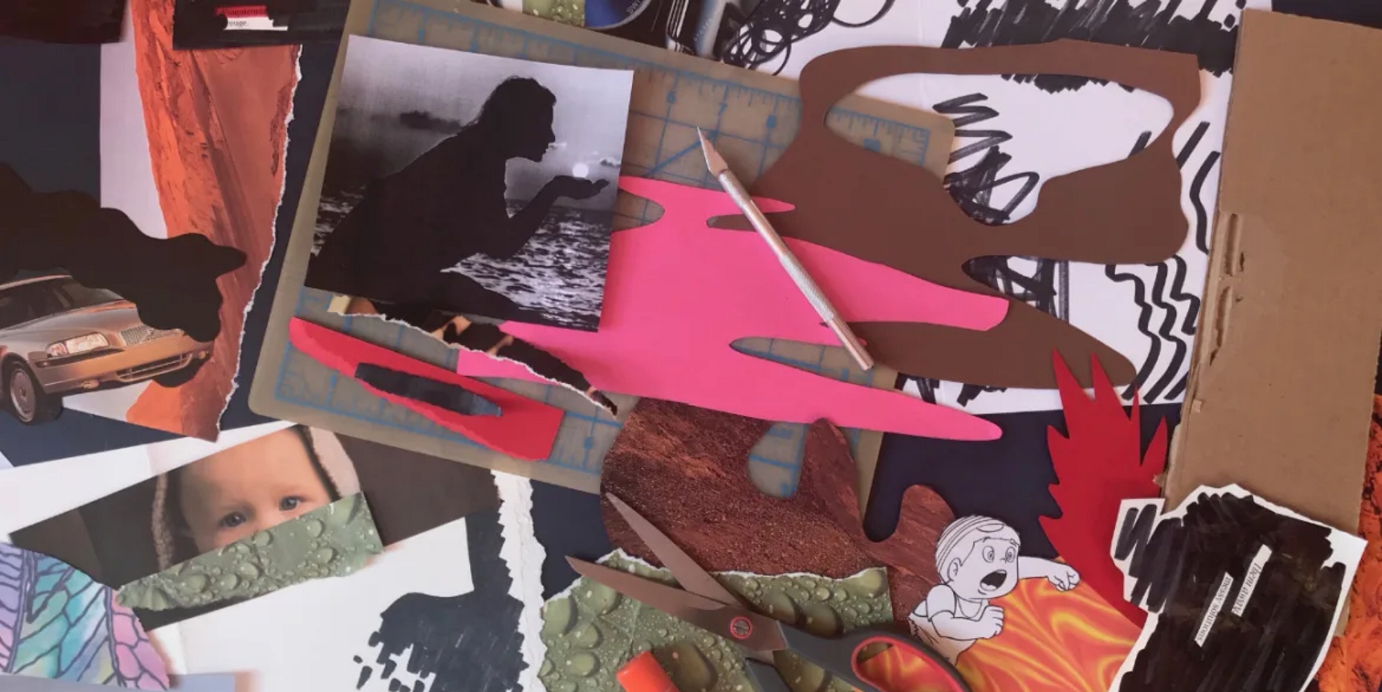 Exposition de collages réalisés par des citoyen.ne.s de l’arrondissement de Saint-Laurent sur le thème des changements climatiques.