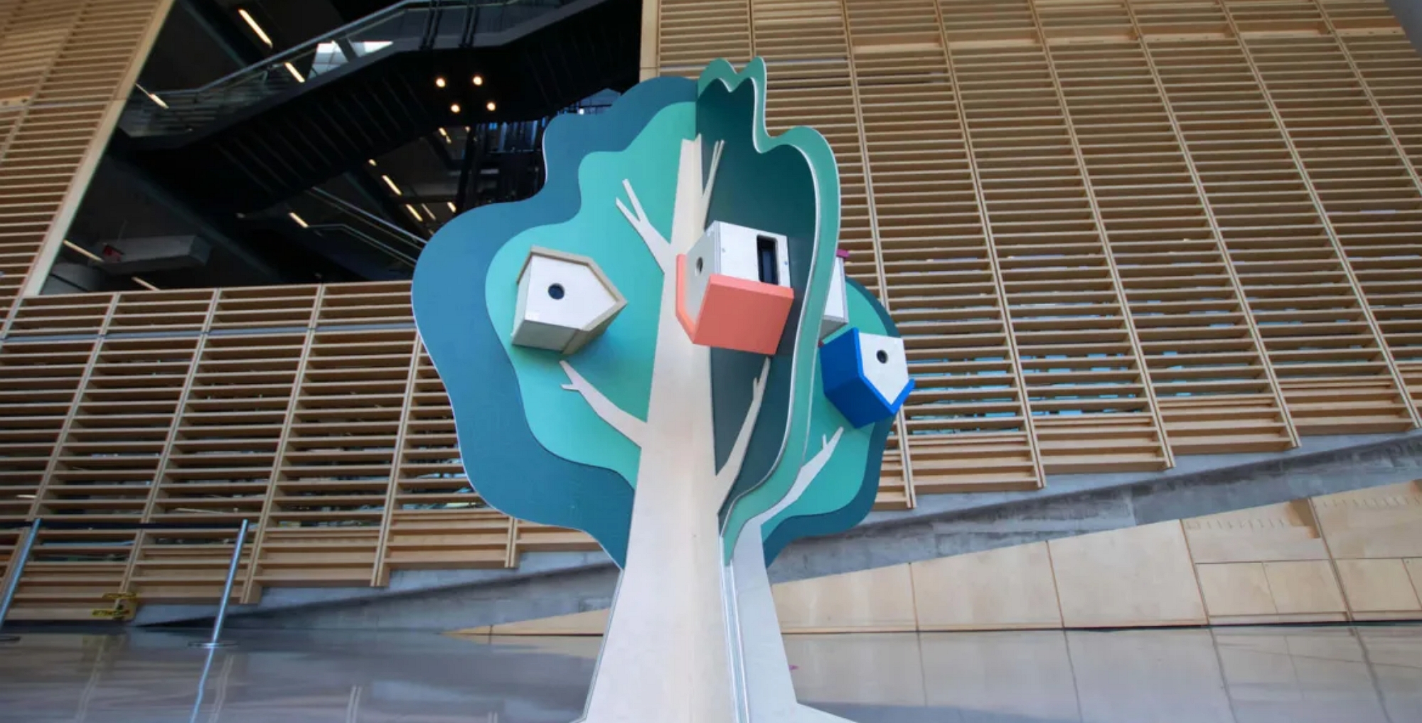On raconte que cette structure arborescente abrite d’étonnantes maisons à oiseaux.