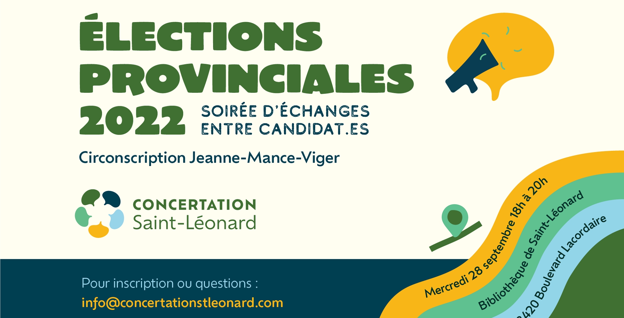 La soirée d’échange se tiendra le 28 septembre prochain de 18h à 20h, à la Bibliothèque de Saint-Léonard (8420 Boulevard Lacordaire). À partir de 17h45, avec un repas léger qui vous sera offert.