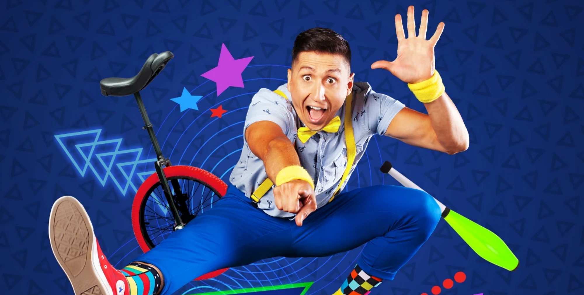 Son sens de l’humour et une bonne dose de folie contagieuse seront mises à contribution, au grand plaisir des jeunes qui feront partie intégrante de sa course folle.