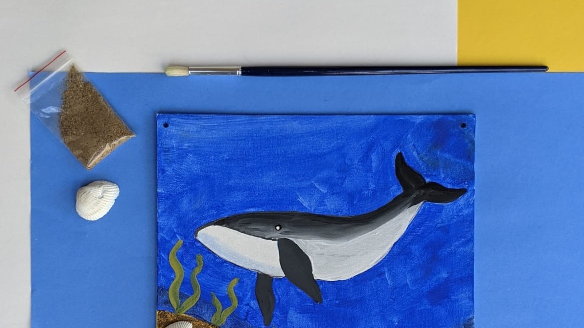 Présentation sur les splendeurs du fleuve Saint-Laurent à travers ses mammifères marins, suivie de peinture sur toile d’une baleine et d’un fond marin sur lequel du véritable sable et des coquillages seront collés!